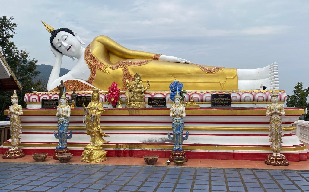 Our first stop was to visit Wat Phat That Doi Kham which features three enormous Buddha statues in the three famous positions (sitting, standing and reclining).