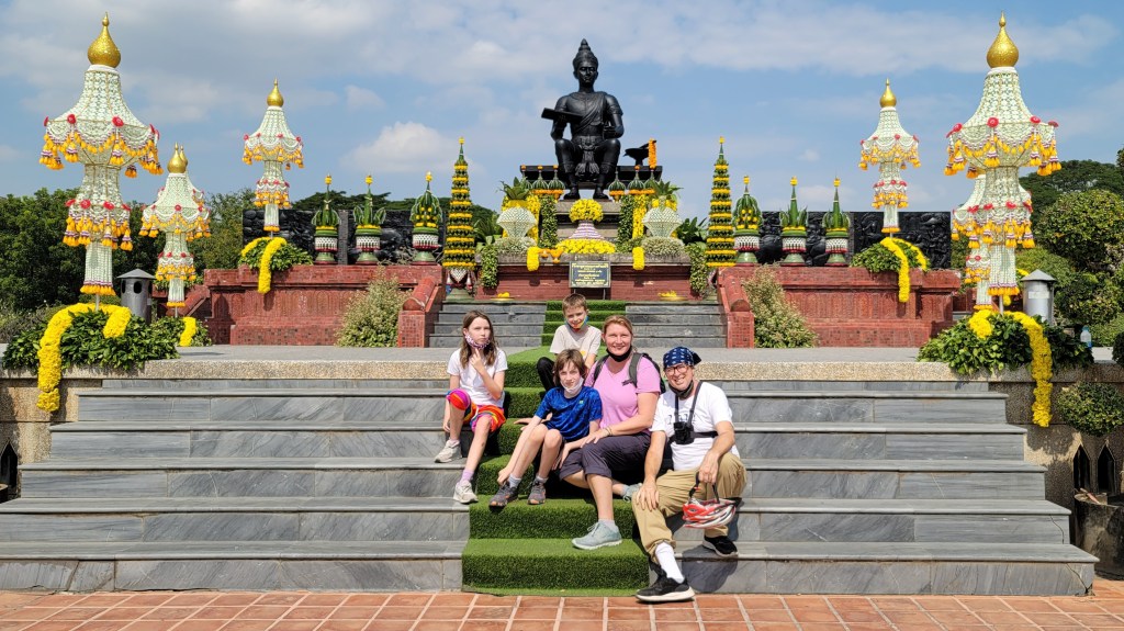 We made a quick stop at a monument to the Father of Thailand, King Ramkhamheung (still decorated from his birthday celebration two days ago).
