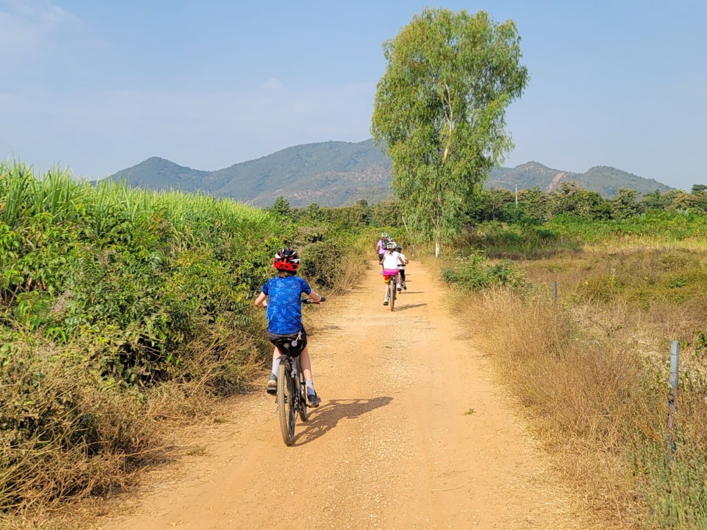 After leaving the Wat we wound 5km through the farmlands outside the city. Most income in the area is agriculture – primarily rice but also sugarcane, tapioca and even teak and chili peppers. We saw examples of all of those.