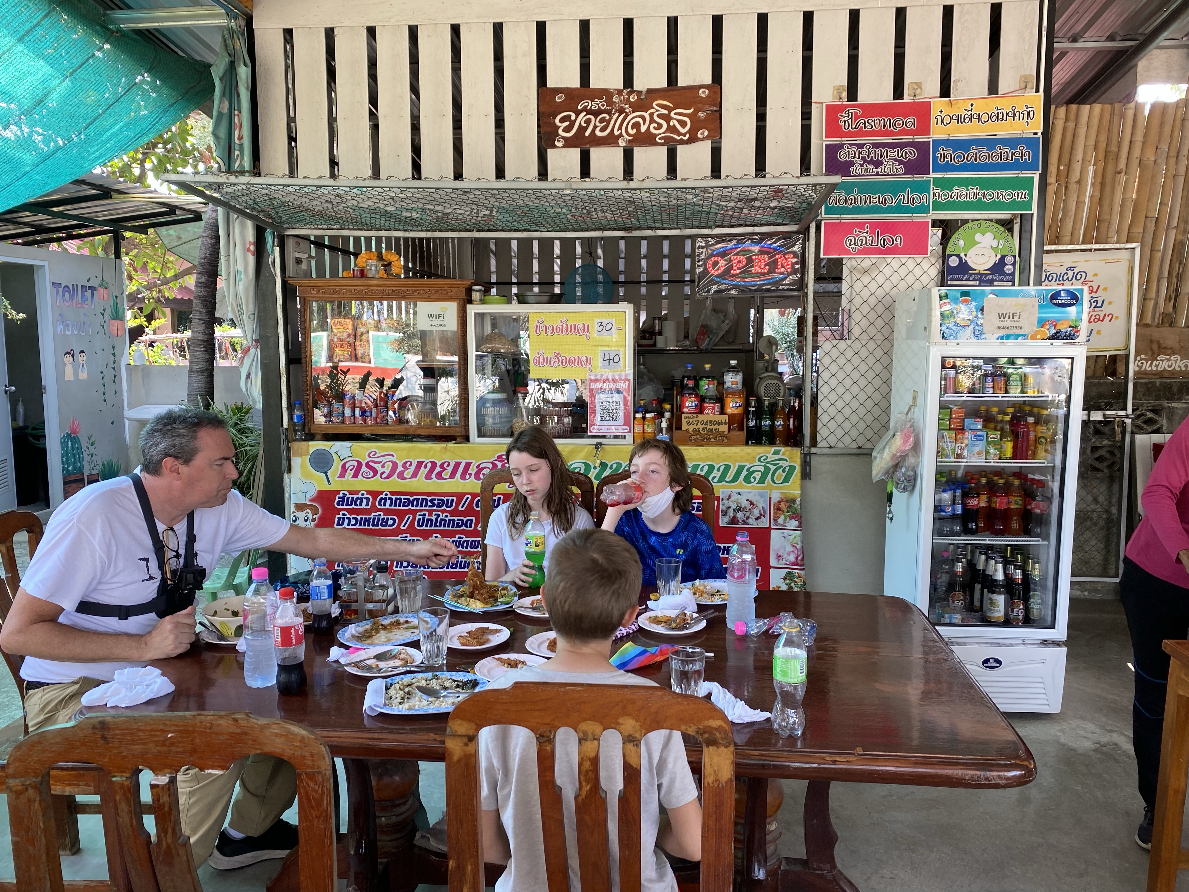 We made a quick stop at a lovely temple reached by a bridge. It is home of a walking Buddha stature that is a significant and unique example of the Sukhothai style of art. From there we headed to a local restaurant for a delicious lunch and a well deserved rest from the bikes.