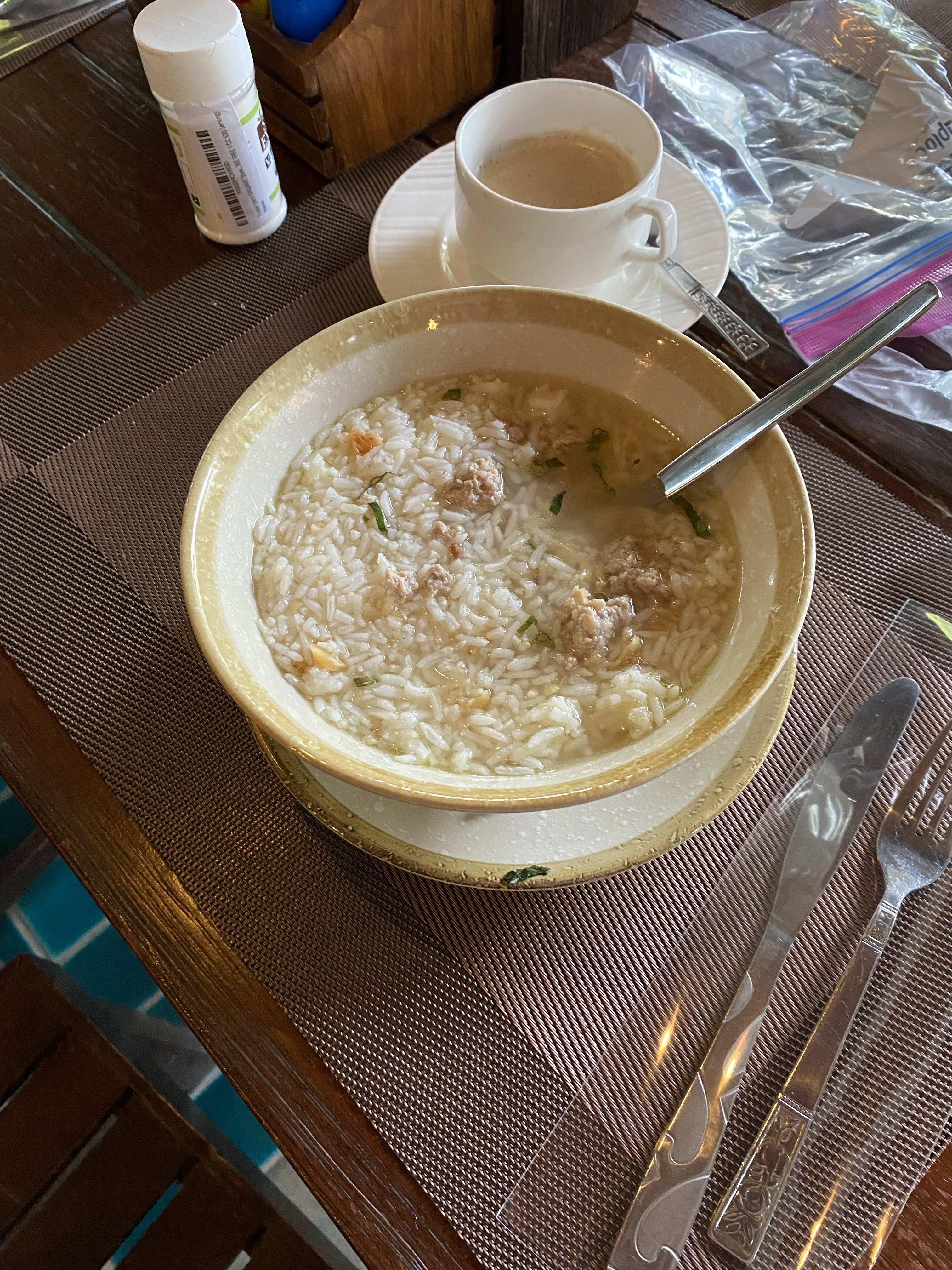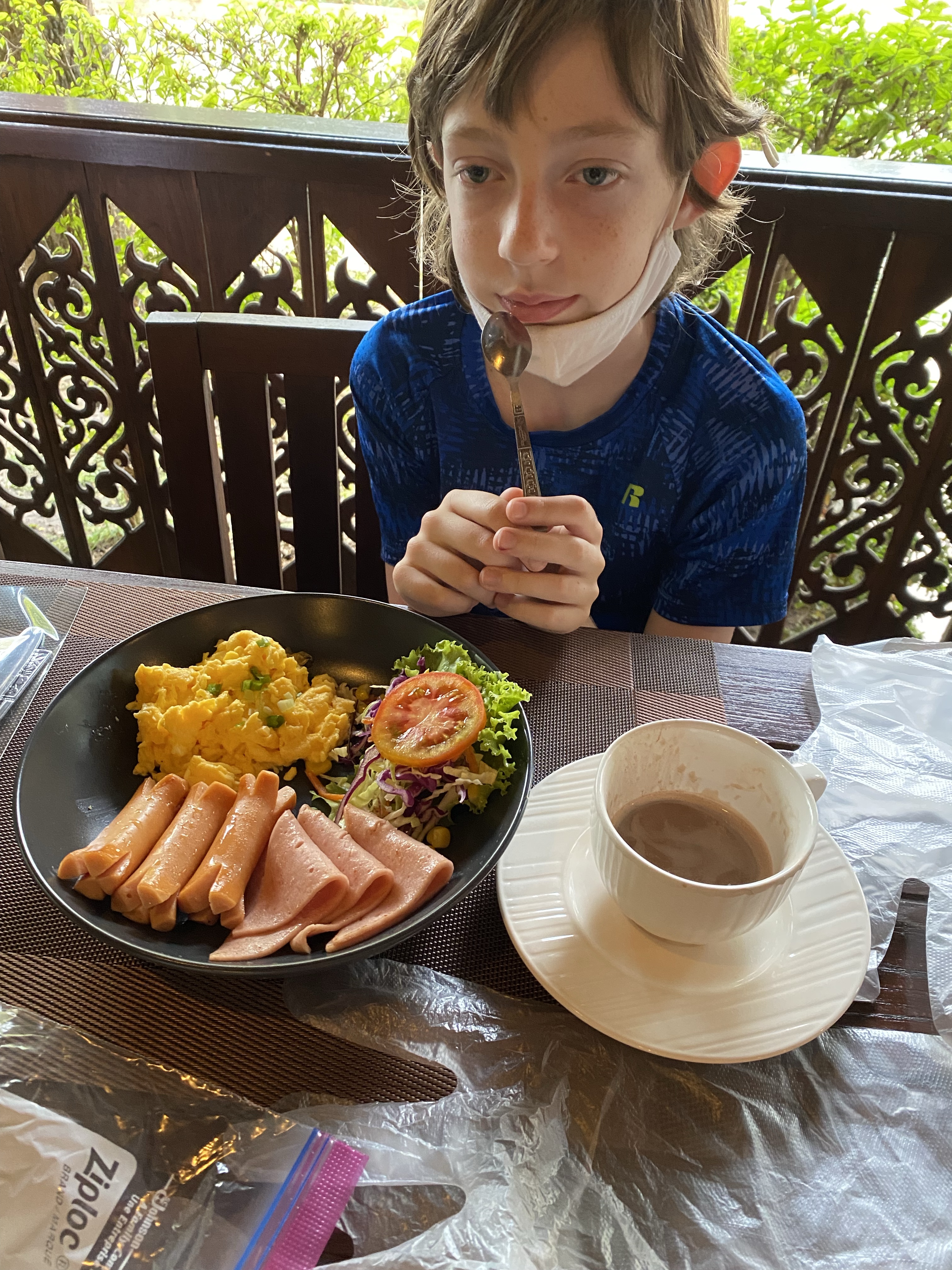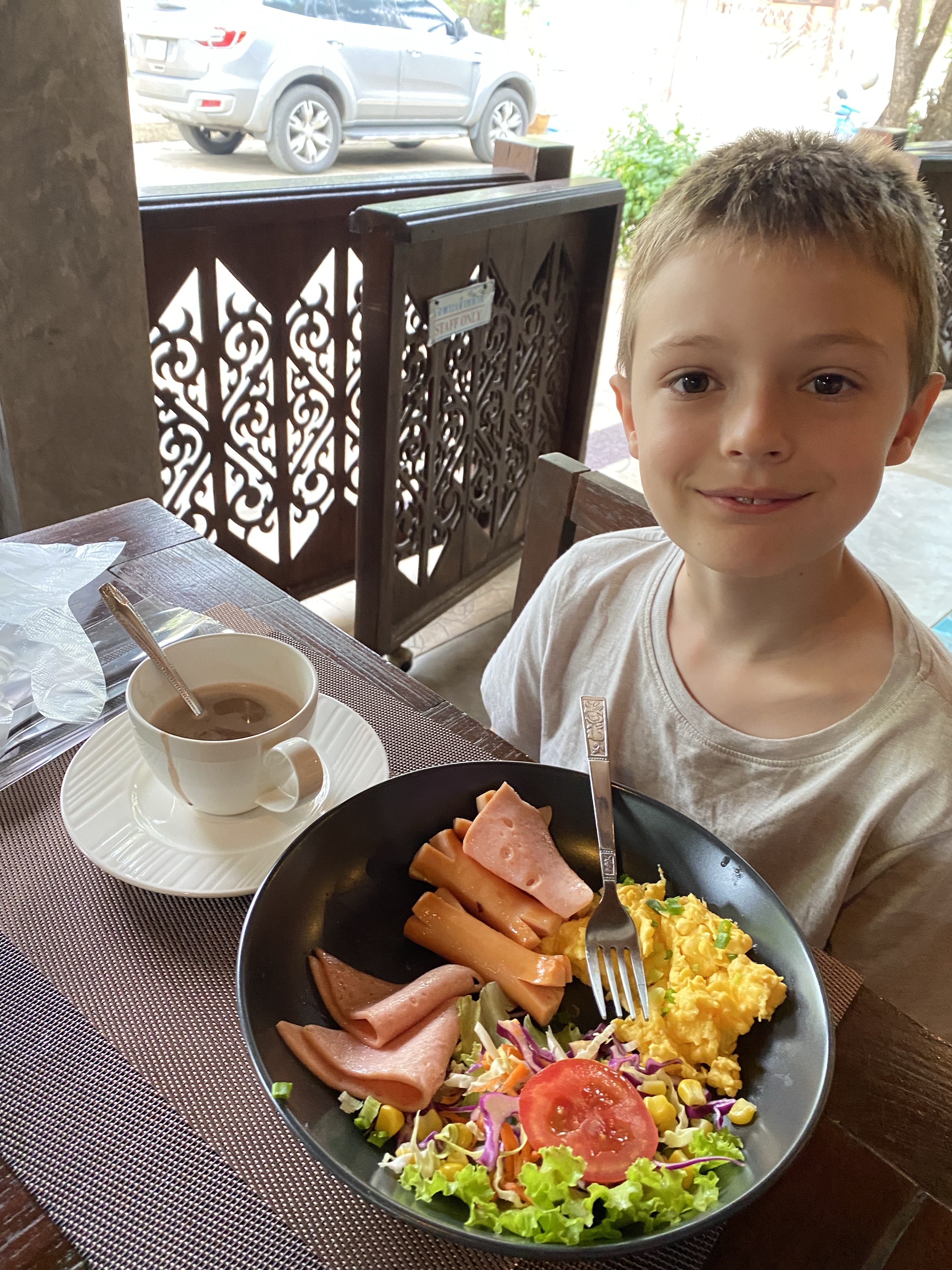The breakfast room was open air, also all wood decor with good coffee and hot chocolate, toast and a small selection of western and Thai choices. The options didn’t stand a chance next to memories of the Phuket buffet but it was complimentary, freshly cooked and fueled our Adventures every morning.