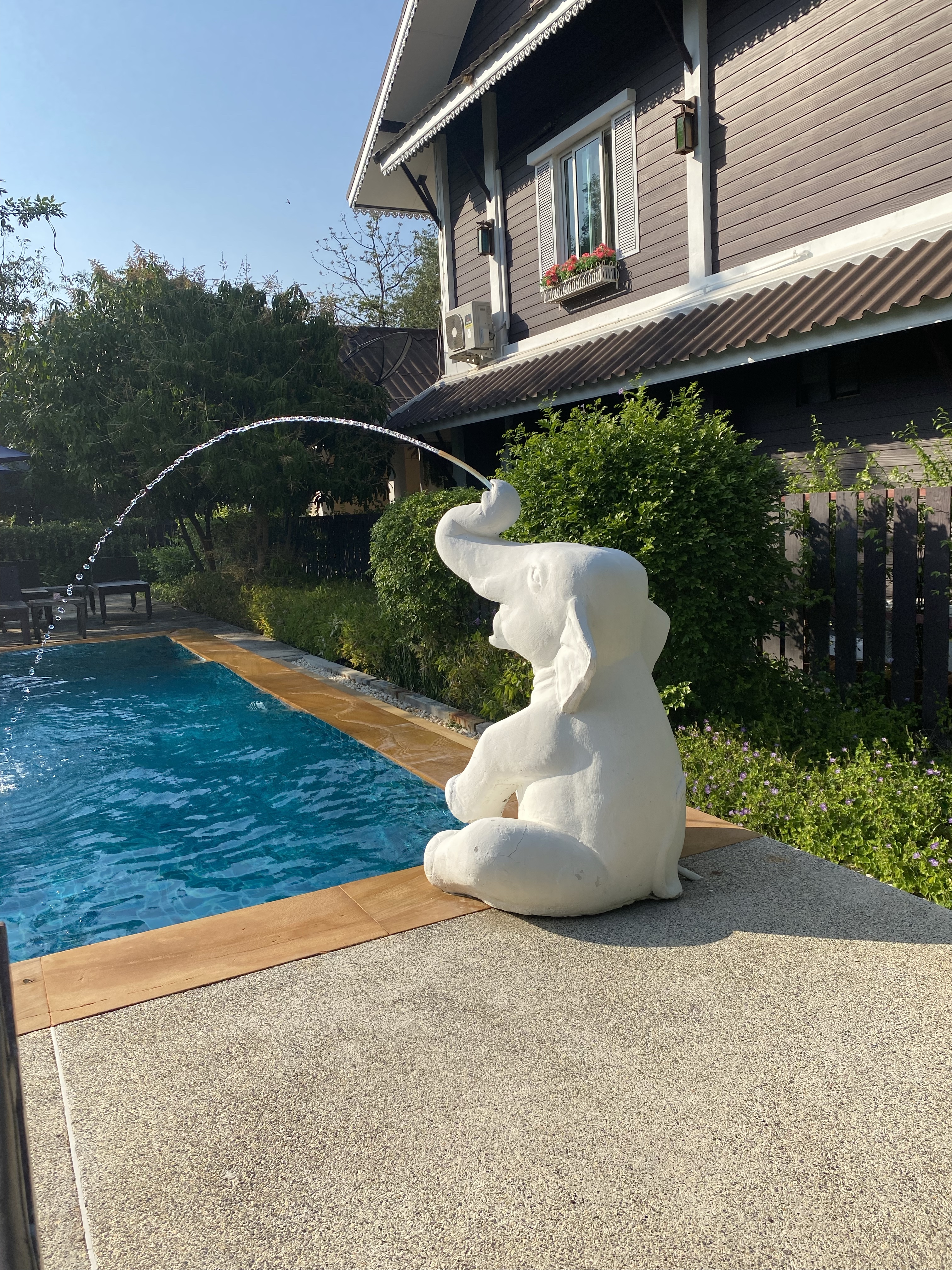 And of course there was the pool which cooled and refreshed us in the afternoons. The elephant fountains were a particular hit as were the bikes we borrowed one night to go to dinner.
