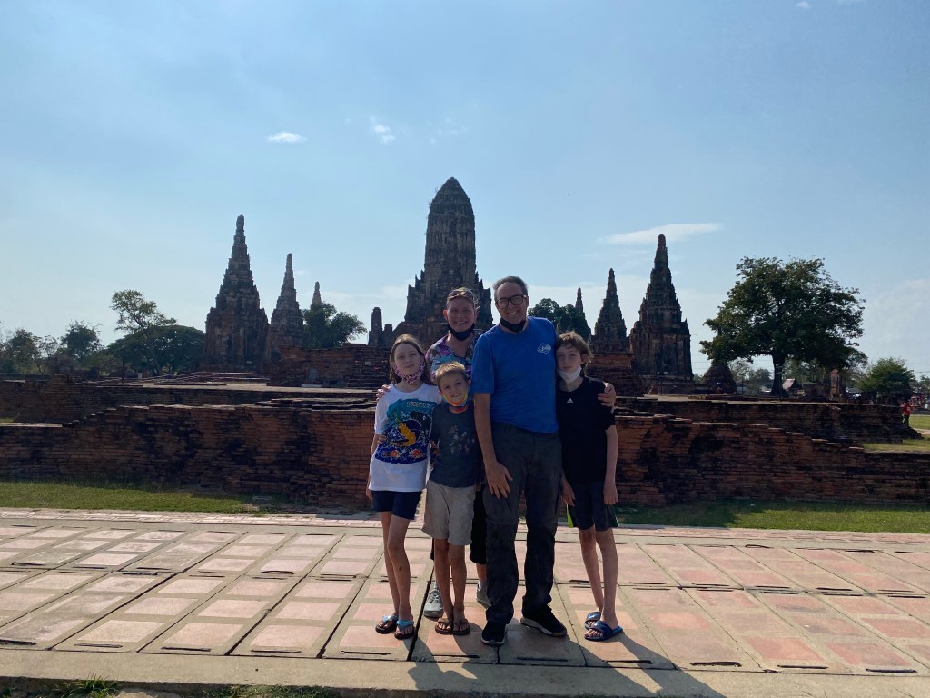 The day ended with a taste of a local delicacy. It’s famous in Ayutthaya and available here and in Bangkok but almost nowhere else in the world. It’s called Roti Sai Mai. The kids were excited about this one – it was created by Ayutthaya’s Muslim population who adapted traditional roti into a sweetened version like a crepe and then rolled it around Thai Cotton Candy like a burrito. The Cotton Candy part of that description is what got the kids.