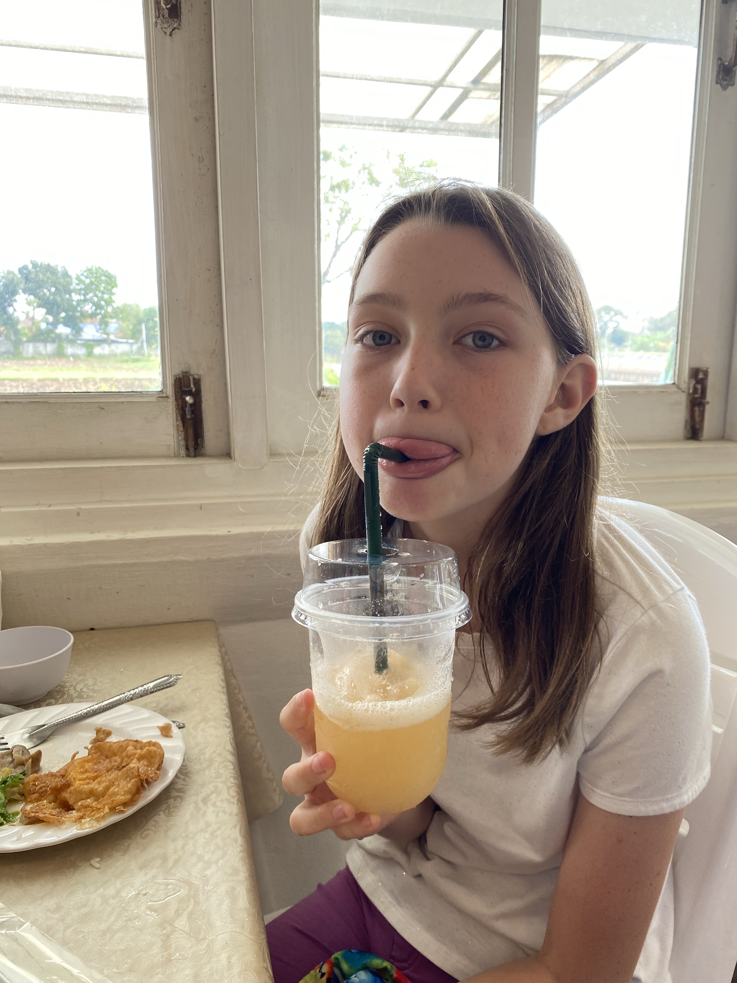 But – we figured out how to have a good day anyway. We found De Riva Ayutthaya – a riverfront restaurant for an early lunch. We didn’t sit outside – about 5 minutes after we arrived a rainstorm passed through.