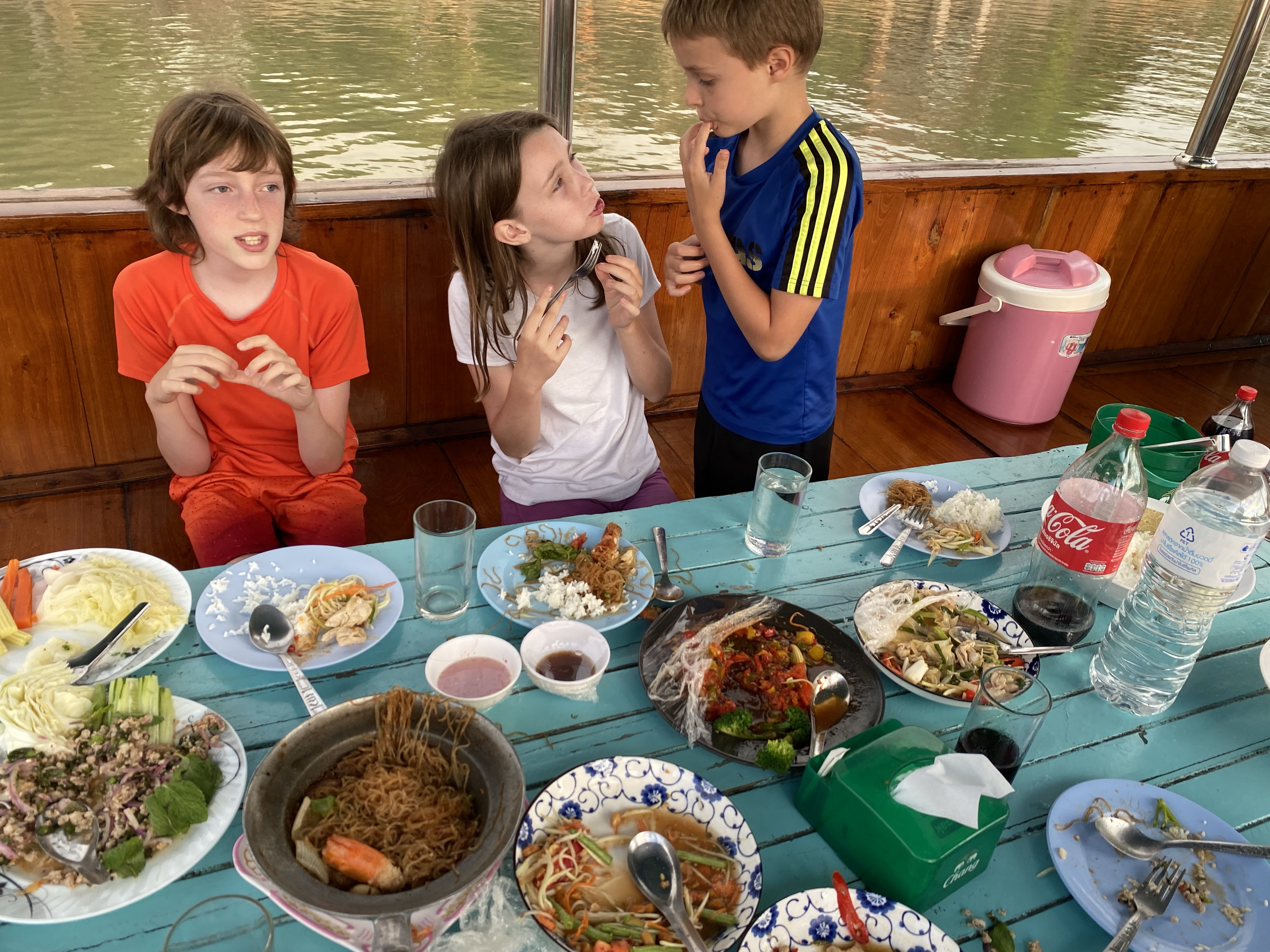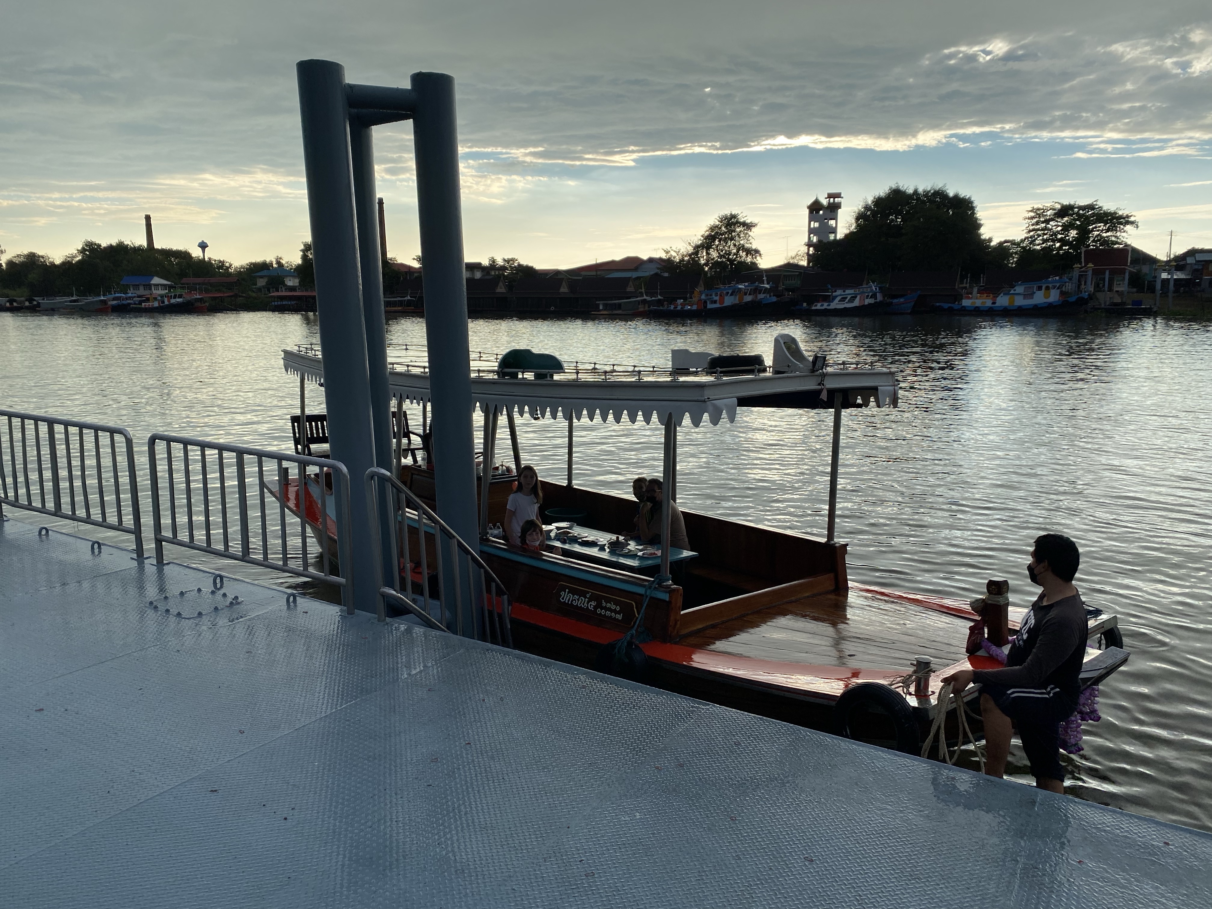 Our other major activity today was at the request of the kids and it was to get back on the river for a dinner cruise. It looked like the weather would be ok, but as we arrived at the dock for departure, heavy rains started again and threatened to dampen our fun.