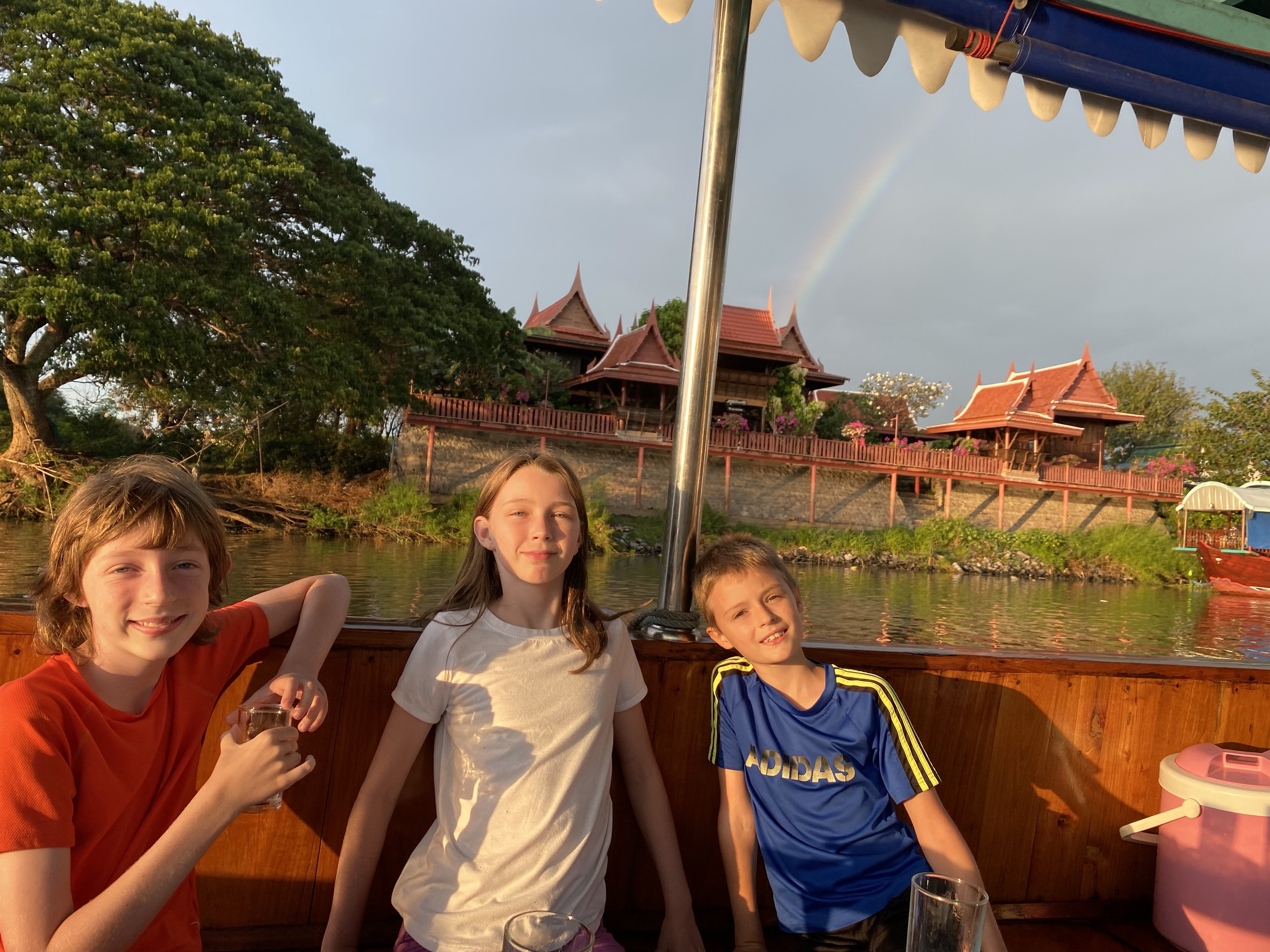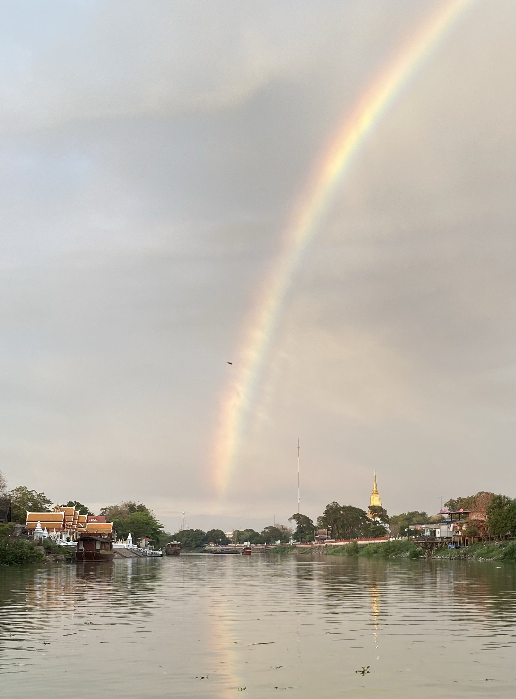 We passed the same basic route as yesterday, but instead of stopping to visit the Wats and ruins, we enjoyed them from the boat. We also got a rainbow – very cool and a good end to the day.