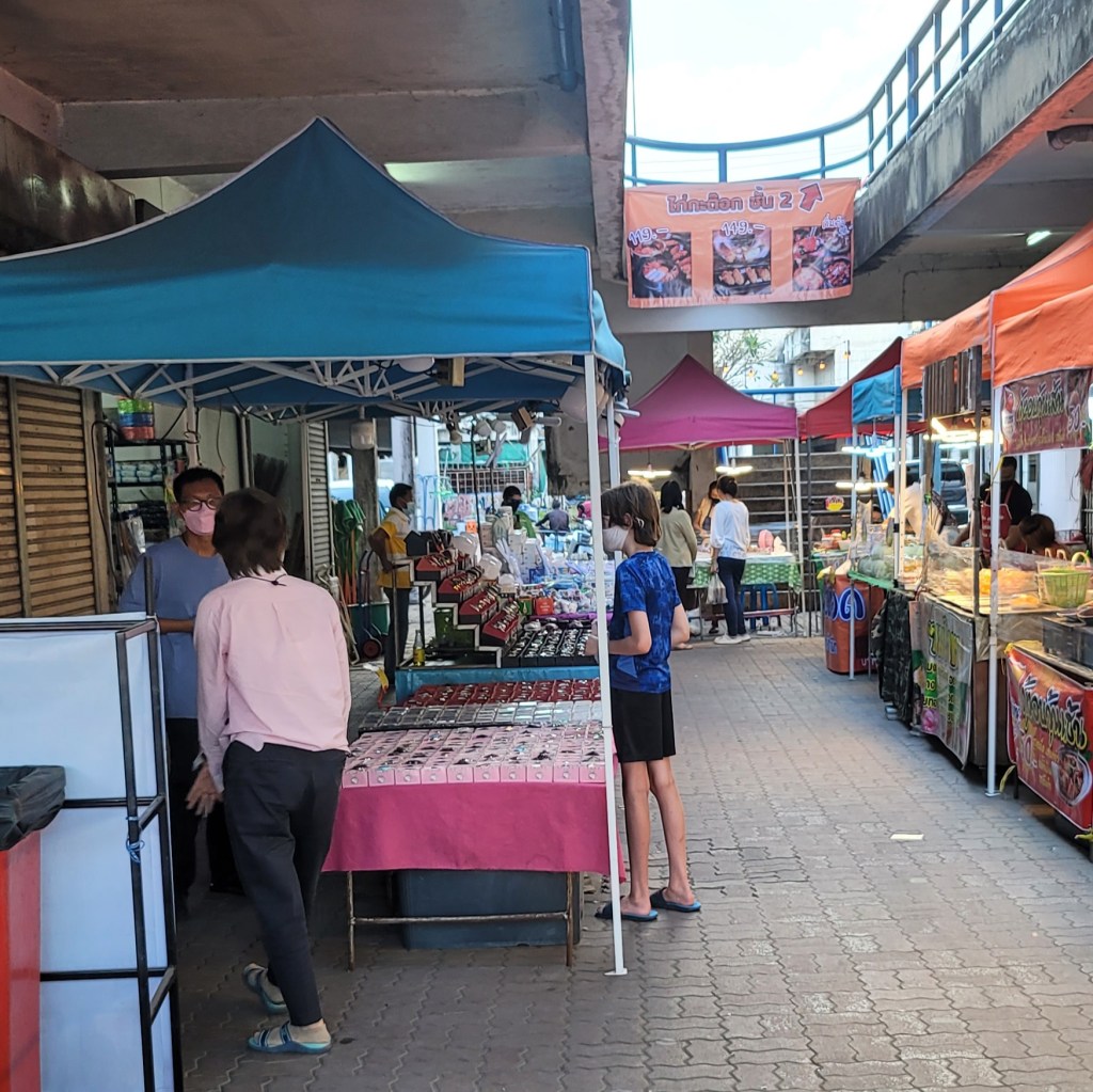 We ended the day at the Kanchanaburi night market where we had dinner, Suaram bought some cute sapphire earrings and CreeperKitty bought himself a watch. Did counting baht and bartering count as Math class?