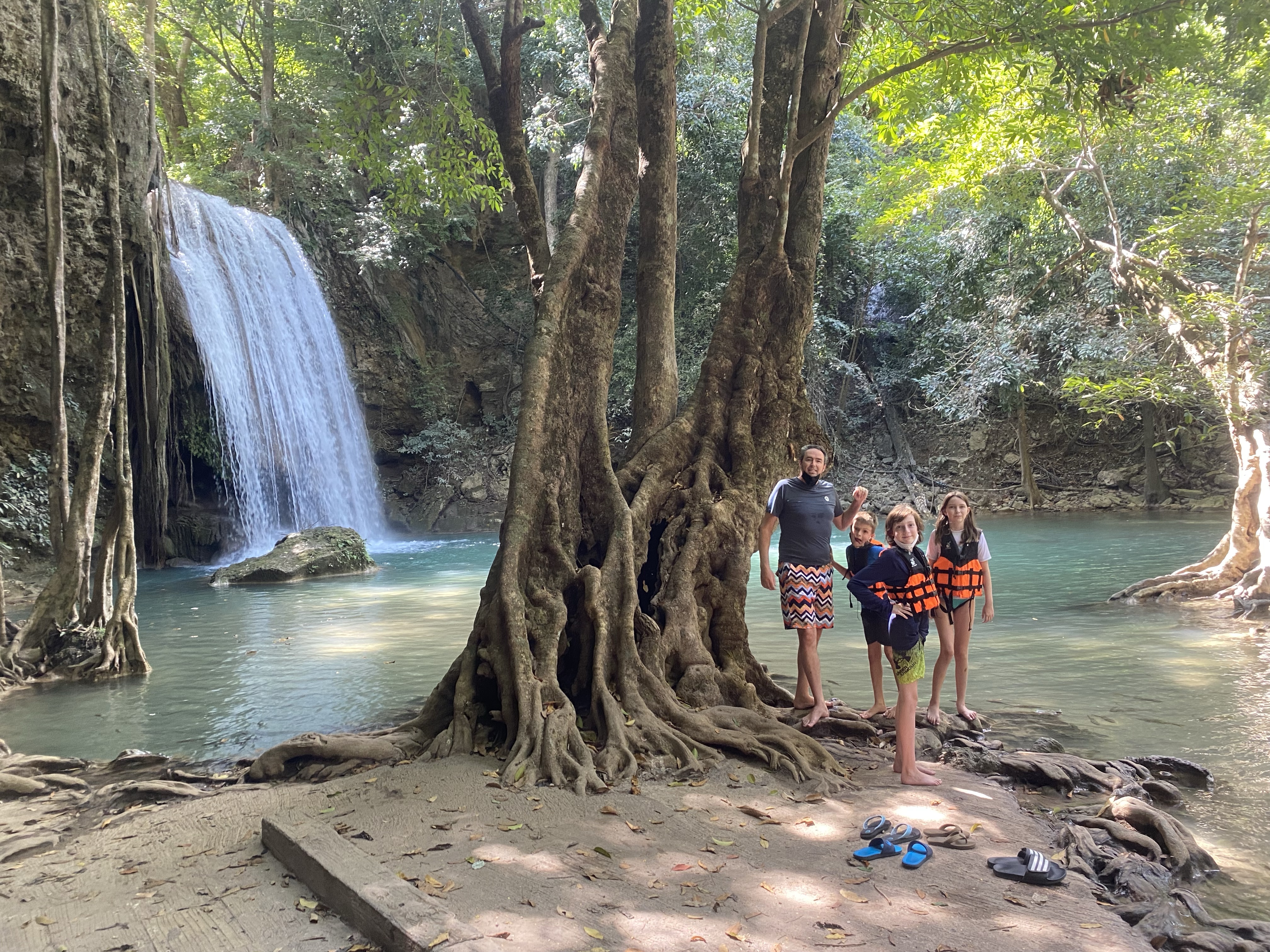 After these history lessons we rode for about hour up river to the Erawan National Park to visit some famous waterfalls. There were seven tiers of waterfalls to explore there. Our Adventurers swam in tiers 2 & 3, hiked to tier 4 and agreed to forgoe the remaining uphill kilometer to see the others.