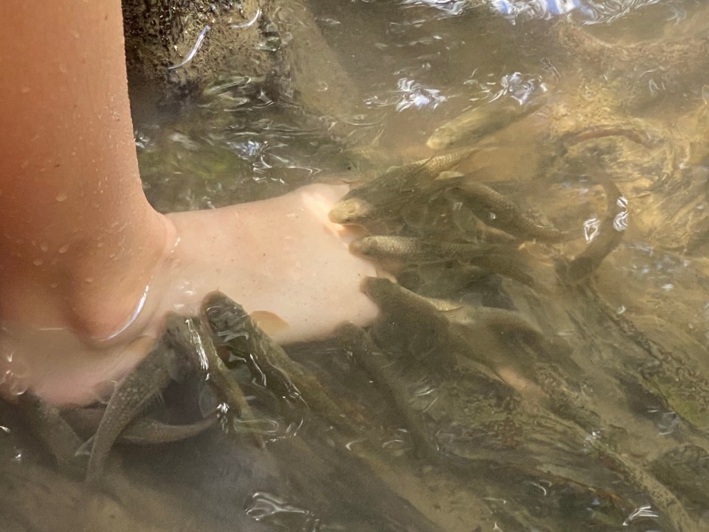Suaram was willing to get a full fish “boot” for the experience despite how much it tickles. What a strange feeling having these fish tickle/nibble at your feet.
