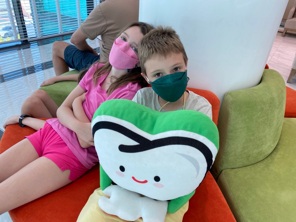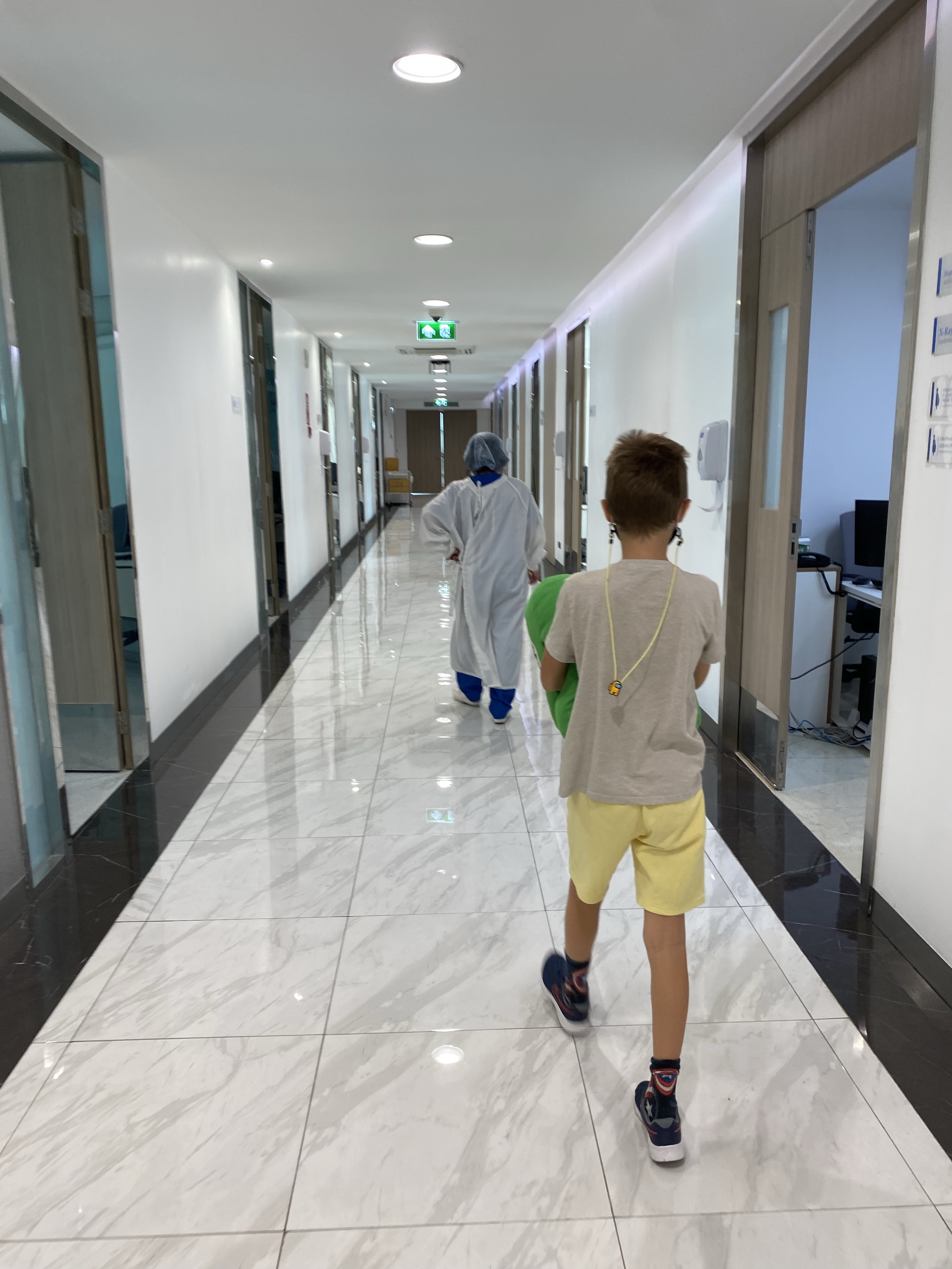 We had lots of Covid protocols to follow including a rapid test when we arrived. It was with saliva instead of a nasal swab – the kids deemed spitting in a little cup ‘gross’ but better than having something stuck up their nose. They also did blood pressure and a general health check with the nurse.