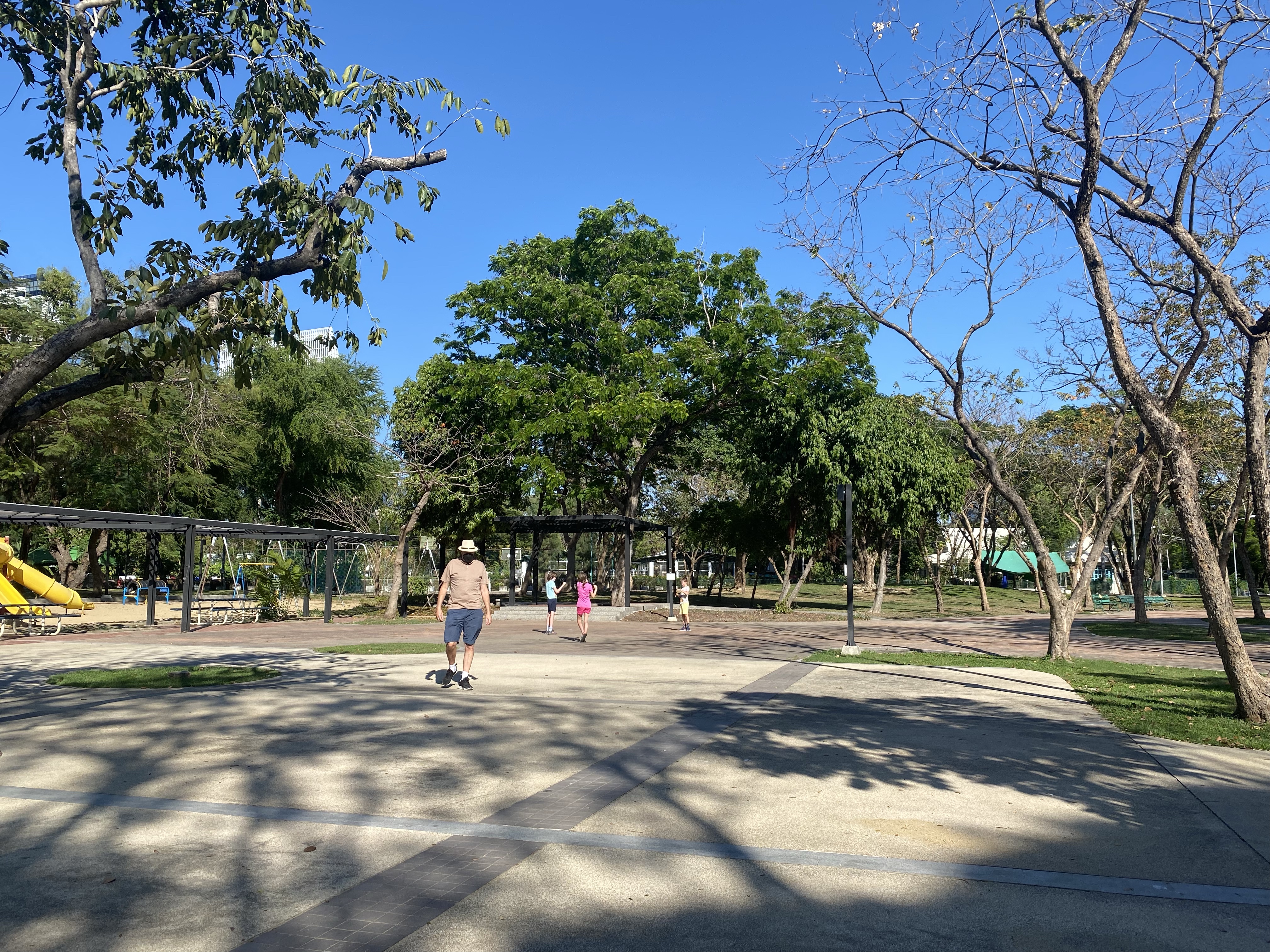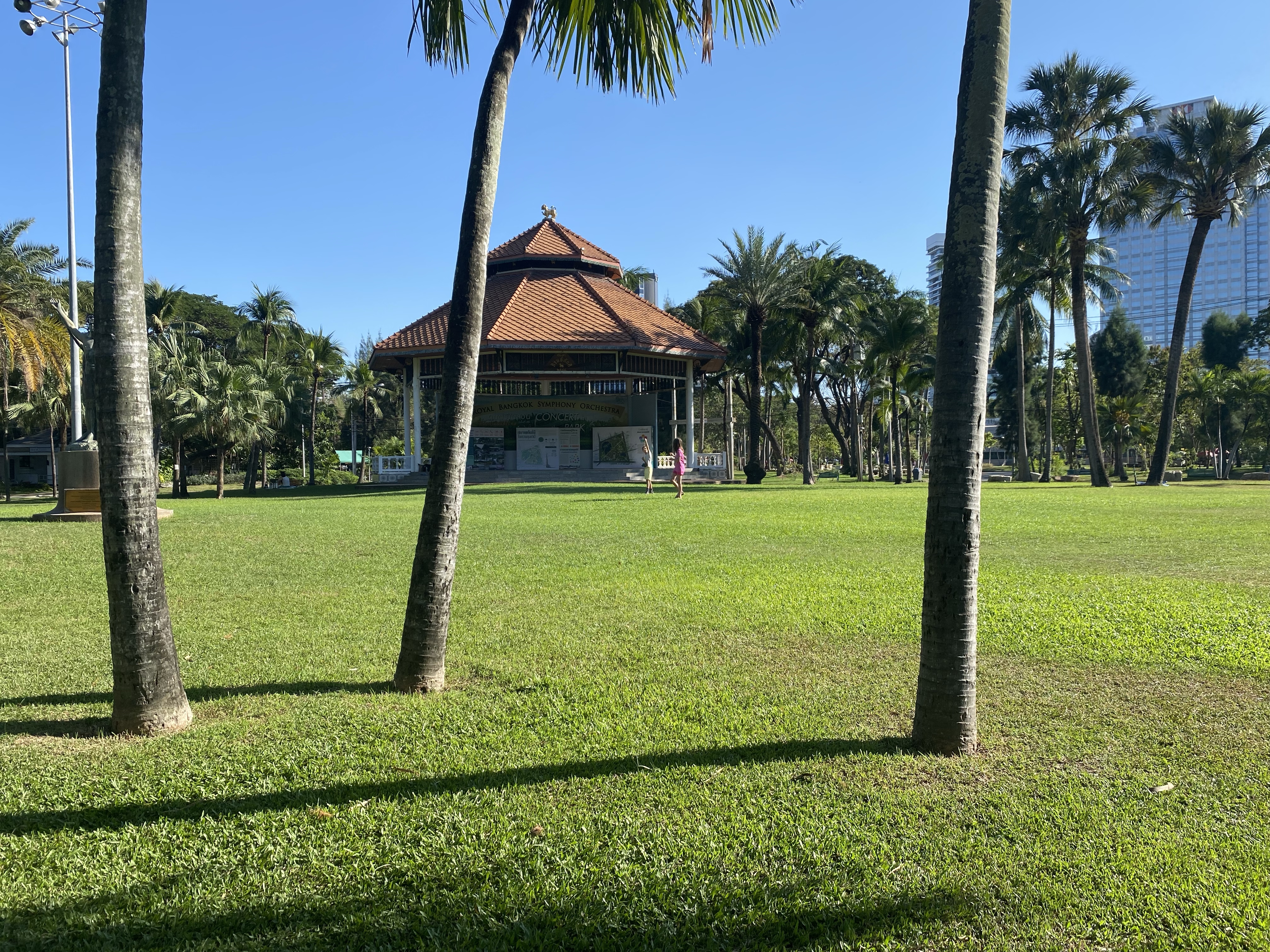 To ward off the food coma, we headed across the street to our target afternoon destination – Lumphini Park. This is the oldest public park in Bangkok, built in the 1940s and named for the birthplace of the Buddha in Nepal. It’s home to an artificial lake surrounded by lawns, walking paths and wooded areas, a library, a bandshell and startlingly large resident monitor lizards.