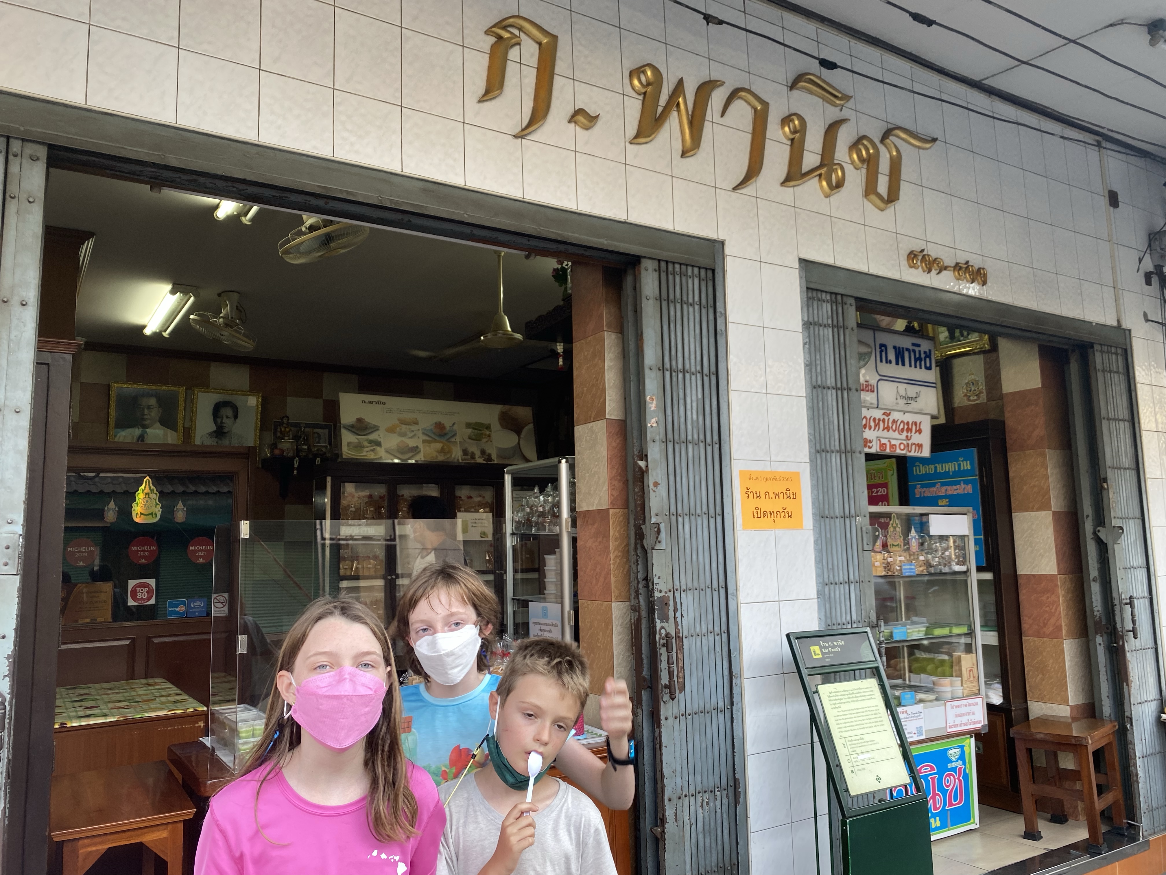 Tiffany and the kids finished up at the Park and decided to try their luck at another street food stall. Actually two although only one from the list. The first was the kid pick – for traditional Thai ice cream made with coconut milk which the kids said was good but not as good as ‘normal’ ice cream.