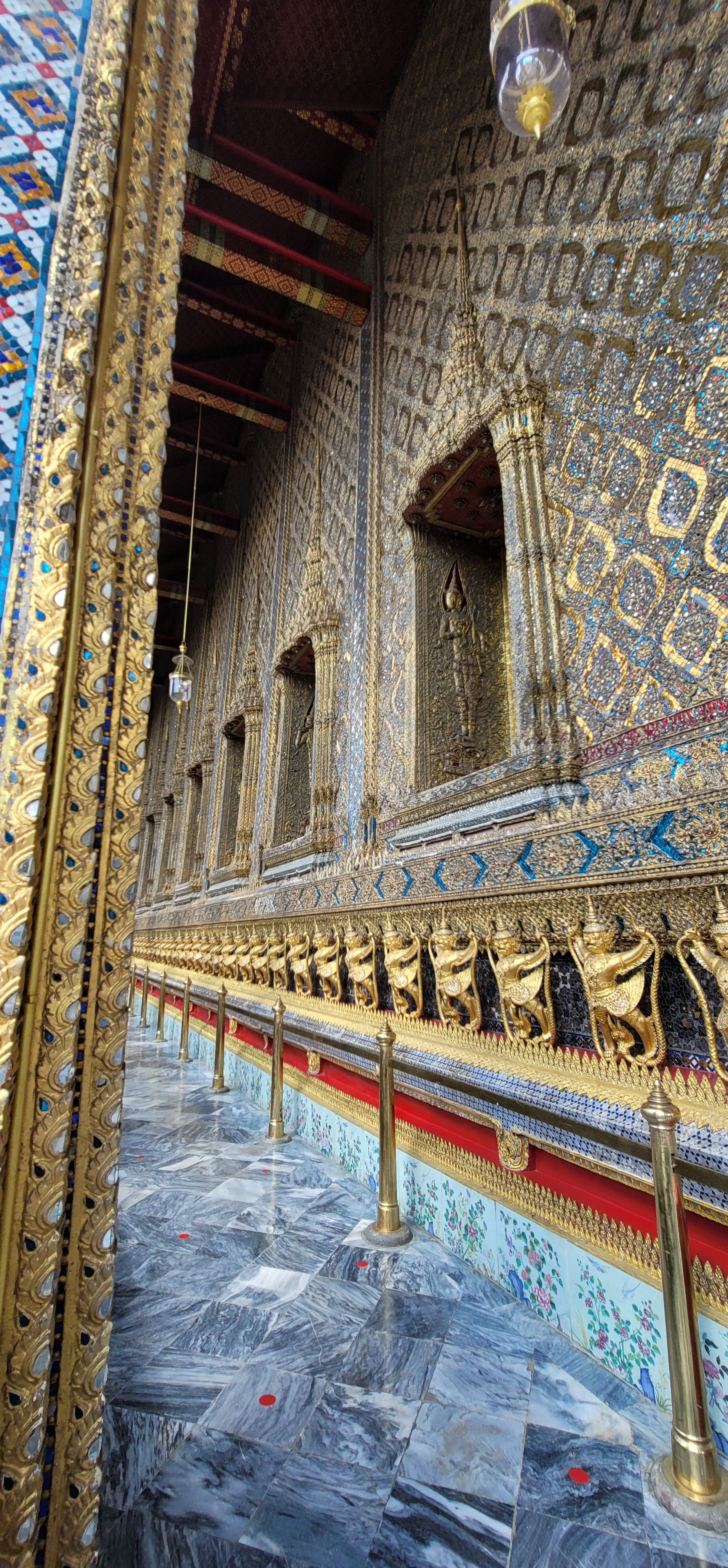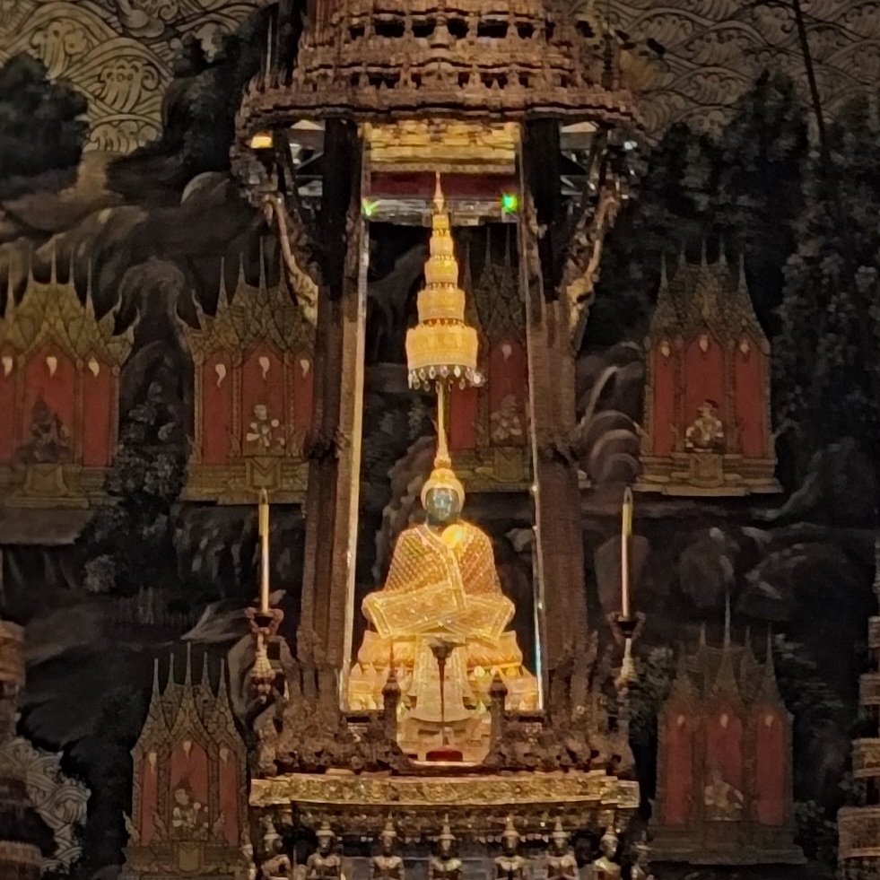 We hired a local guide when we arrived to make the most of our experience and started with the temple of the Emerald Buddha. We have been looking forward to seeing it since we visited our first big Wat in Chiang Mai – Chedi Luang. The Buddha was housed there for almost 100 years before it was moved to several places and eventually came to Bangkok in 1784. It has long been one of the most sacred Buddha images in Thailand.