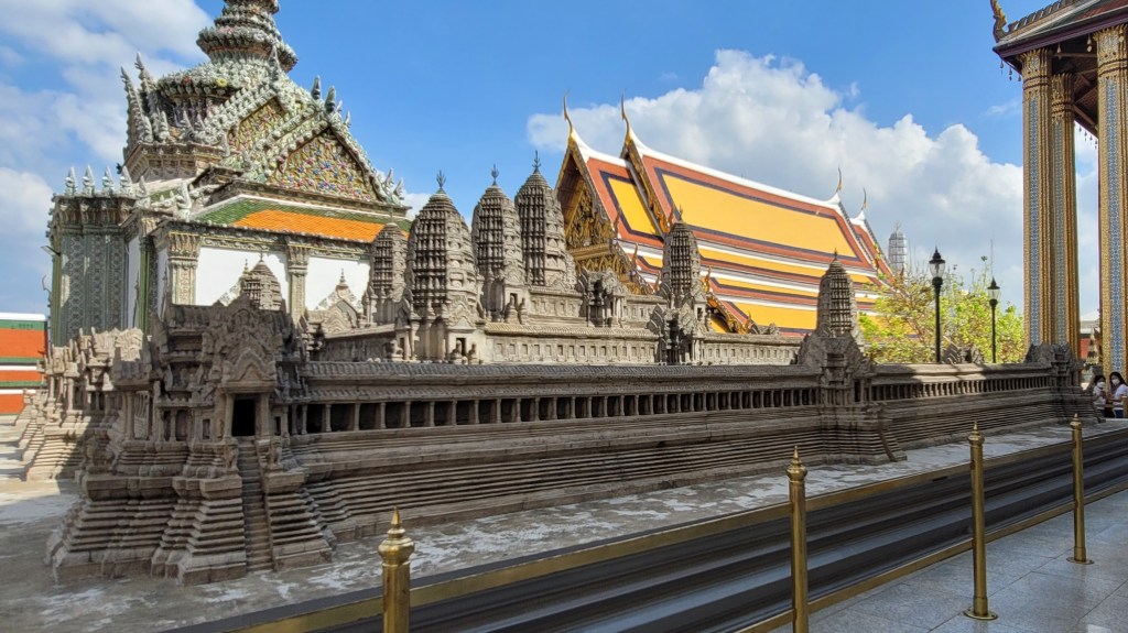 It also features a full and huge model of Angkor Wat which is located in current day Cambodia. At the time it was made, the Angkor Wat complex was part of Siam (Thailand) and it was commissioned by the King to show what wonders were part of the Kingdom.