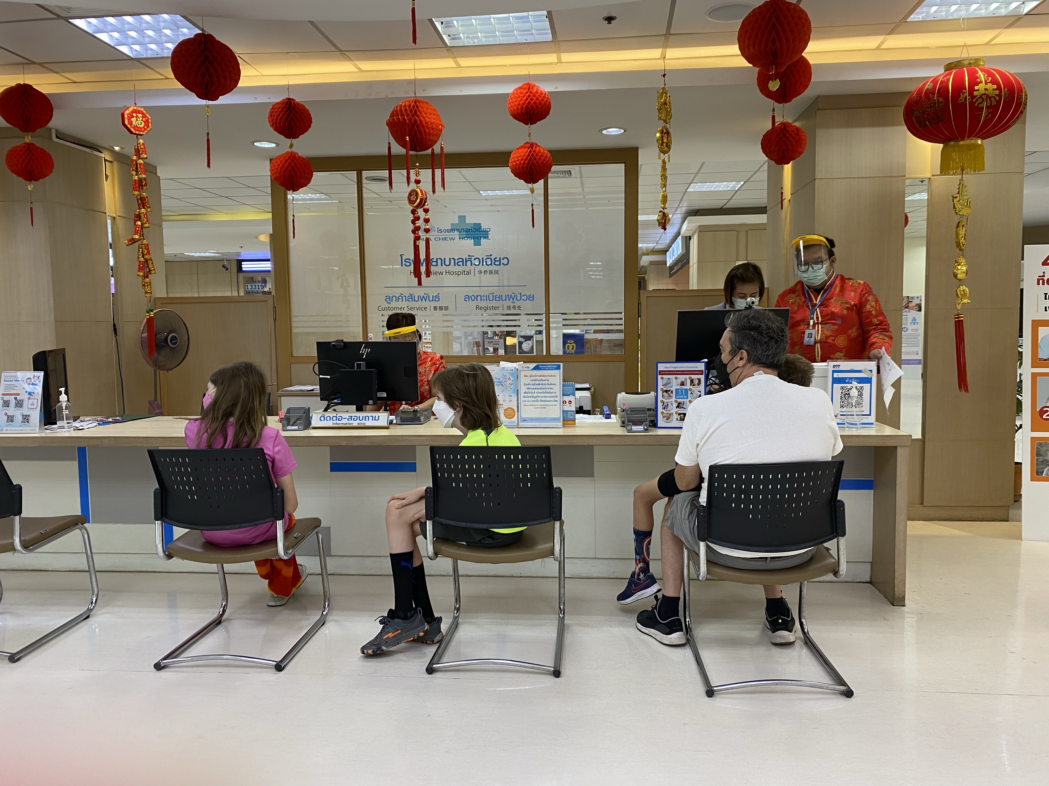 As we prepare to leave Thailand tomorrow we were up and out early for our Covid tests so we could get same day results. We got a recommendation from our hotelier for a private hospital that is reliable and affordable and it was exactly that. The hospital seemed to take things more seriously than our tests for travel in the US. We all had our vitals checked prior to the test (btw no change from when we had them checked Monday at the dentist, must be a Thailand thing).