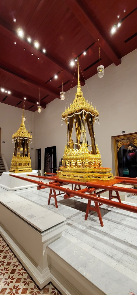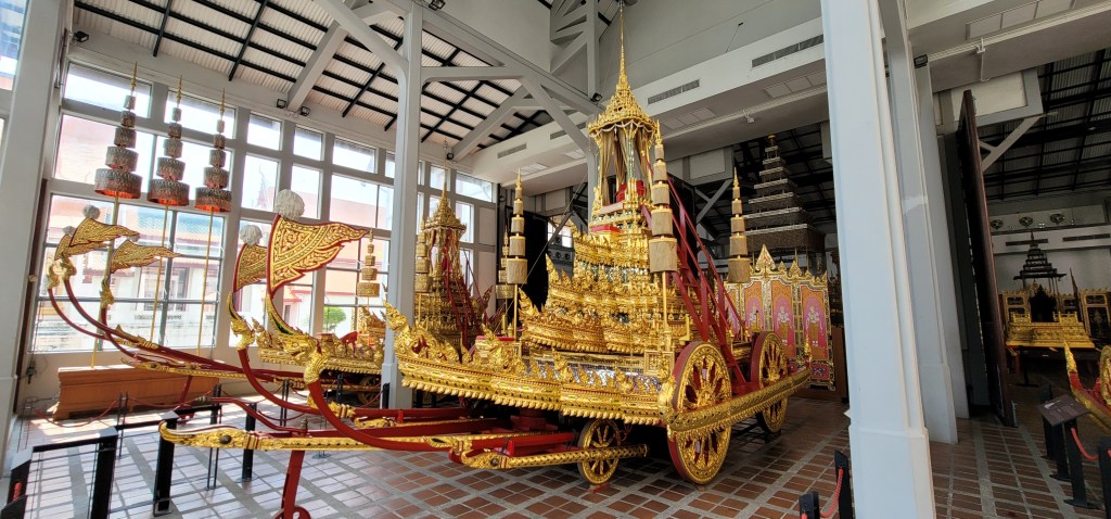 This is the Royal Chariot of Victory built by King Rama I in 1796. It has been continously used for major royal events. It was used most recently in a funeral ceremony for King Rama IX in 2017. It weighs 13 metric tons (nearly 30k lbs) and requires 200 men to pull it.