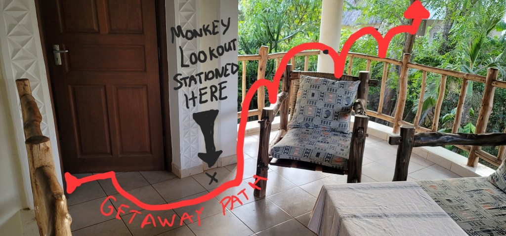 The host of our Diani Beach rental had told us that there was a dog that lived there. Sadly, Skipper’s burglar-chasing days are behind her so she was asleep throughout this caper.