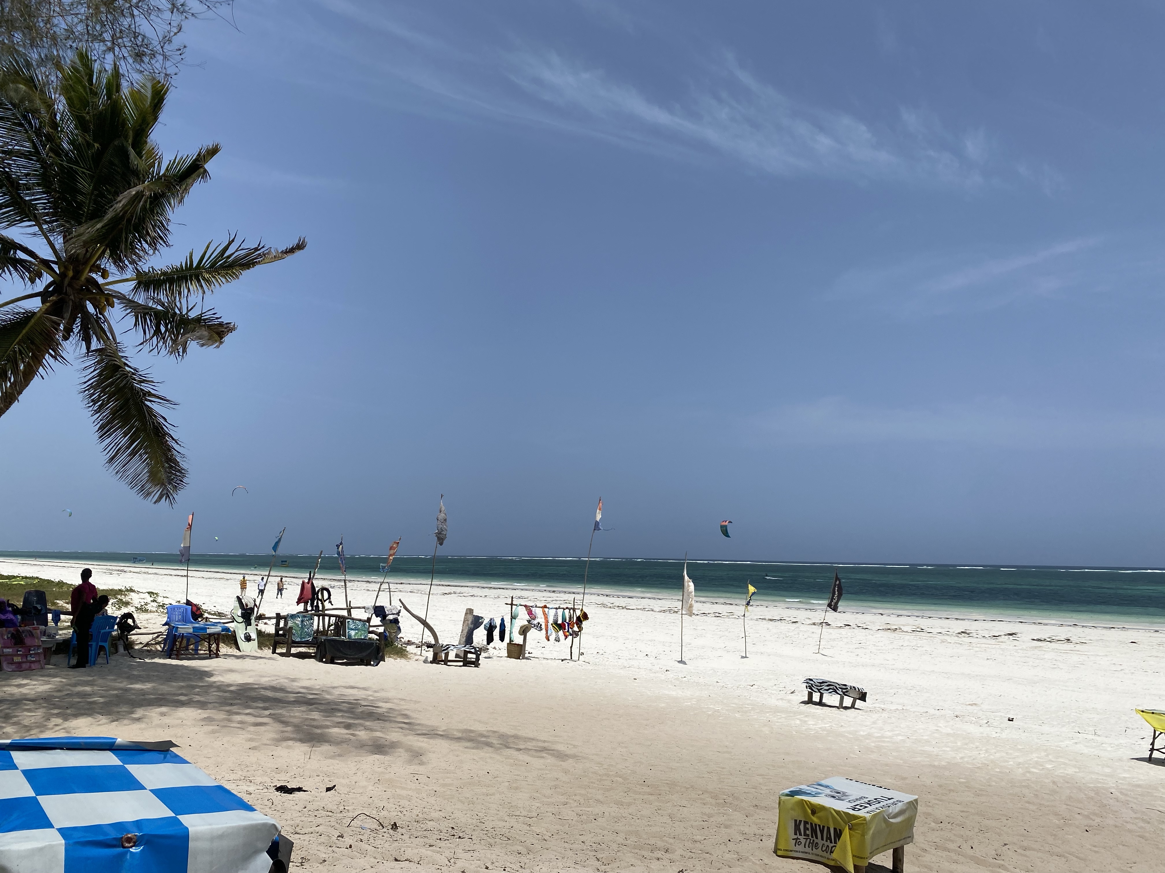 We were solicited by a number of locals on the beach. Not surprising since there are more of them than tourists during this low season. We were offered coconuts, bracelets, necklaces, snorkeling tours, safaris and, of course, kite surfing lessons.