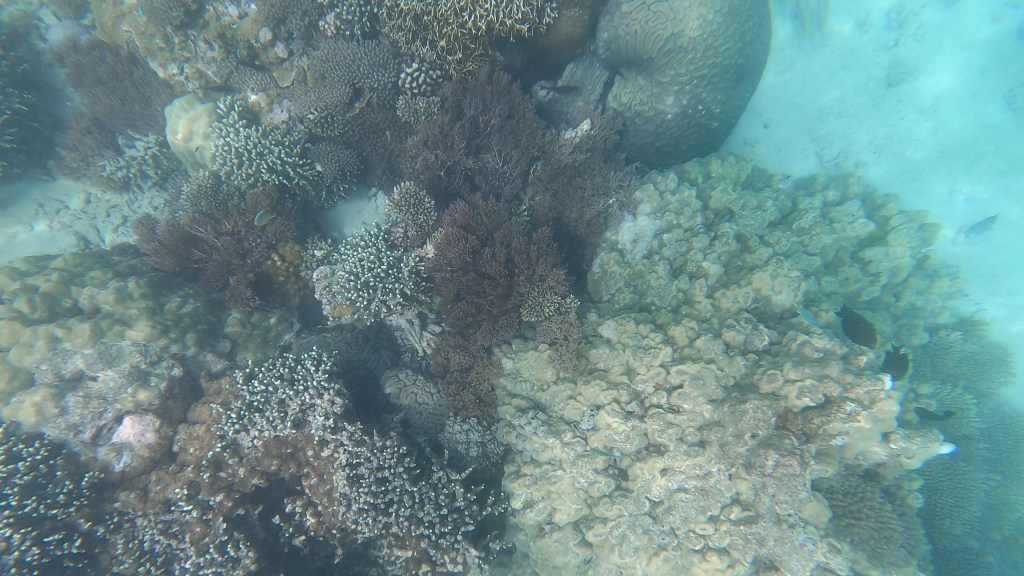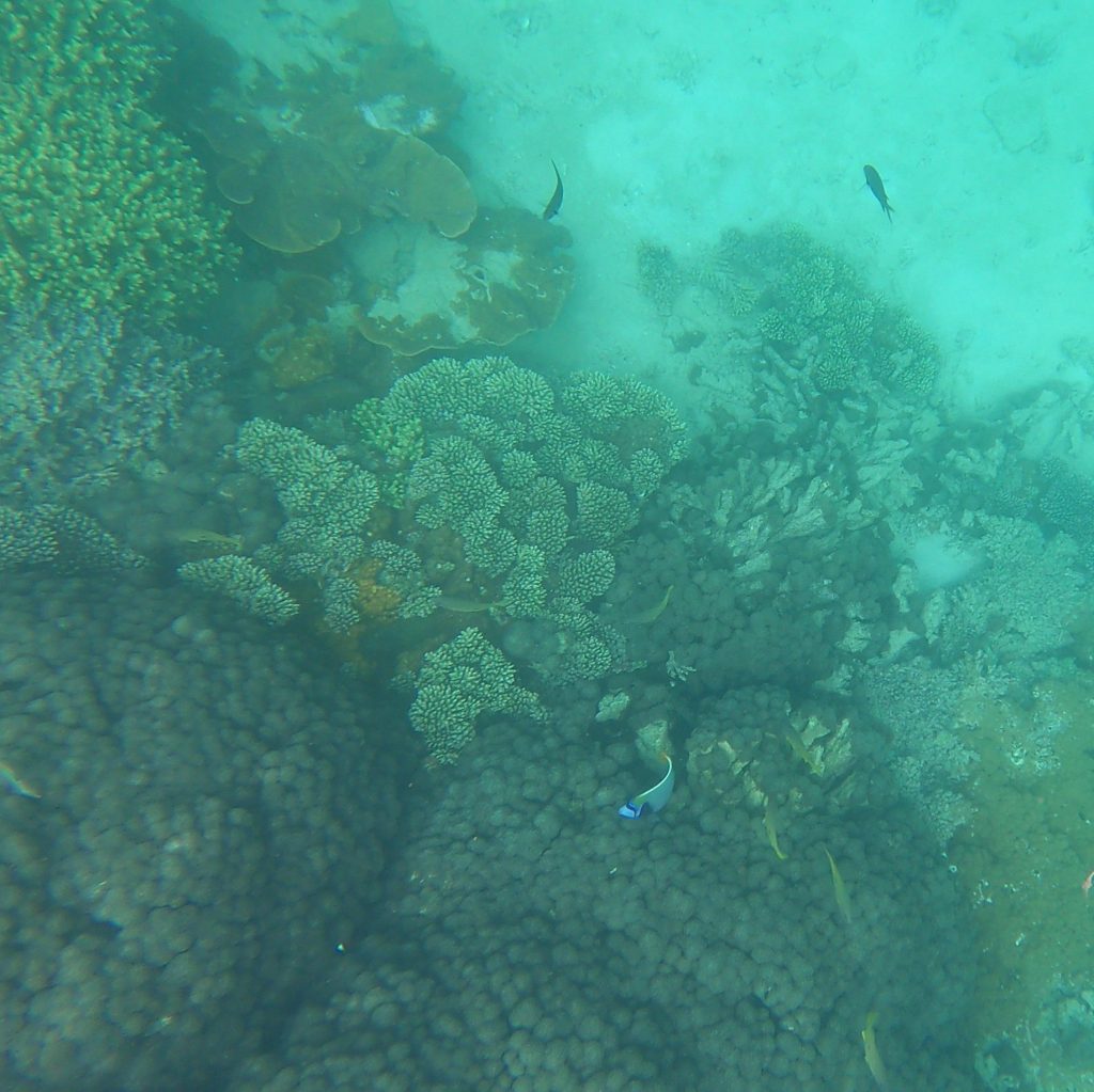 Suaram captured about twenty minutes of underwater video with the GoPro camera which we can share in a future post after its been edited. Here are a couple of shots from that footage showing some fish and the quality of the water today. Good, not great.