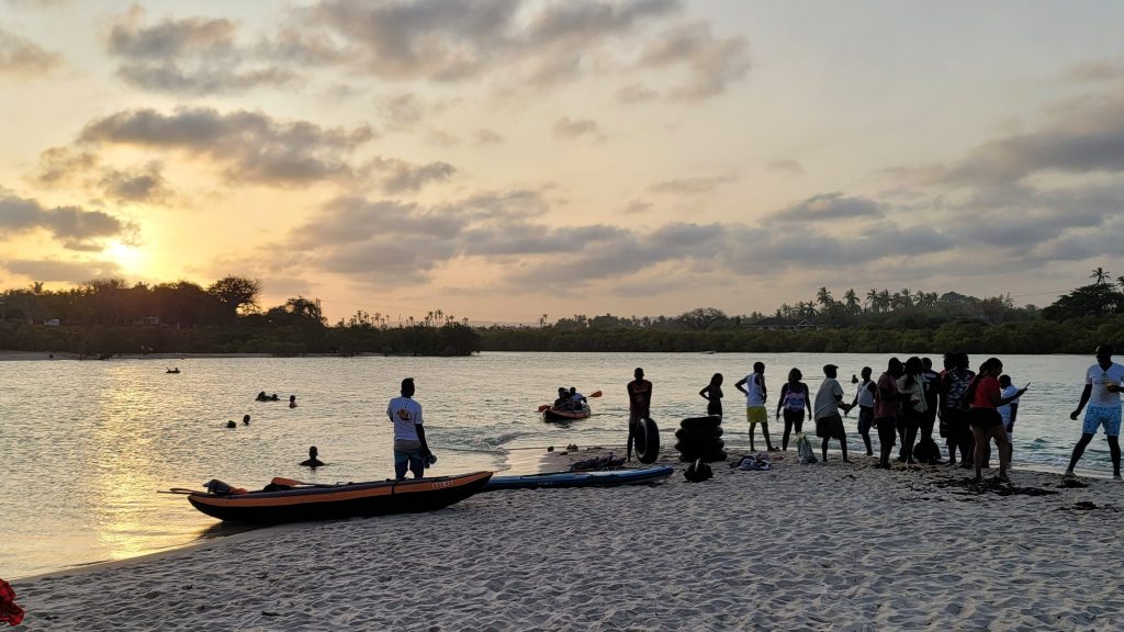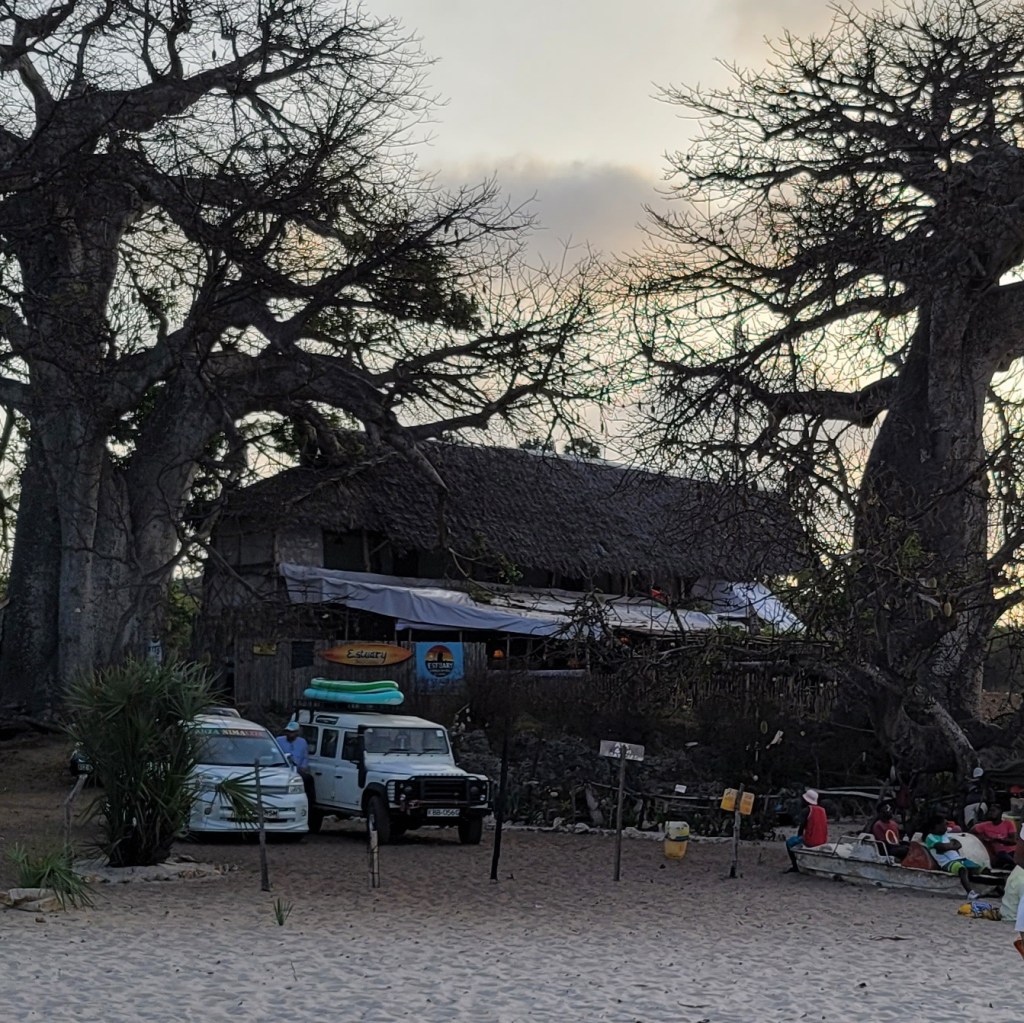 Dinner was a mixed bag but the setting was unbeatable. We were on the beach between two massive baobab trees watching the sunset. The kids all liked their meals (Hawaiian pizza on 3 continents and counting) but not everyone loved their chocolate smoothie.