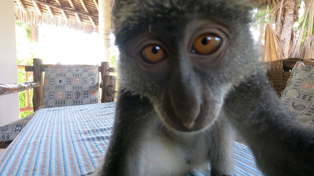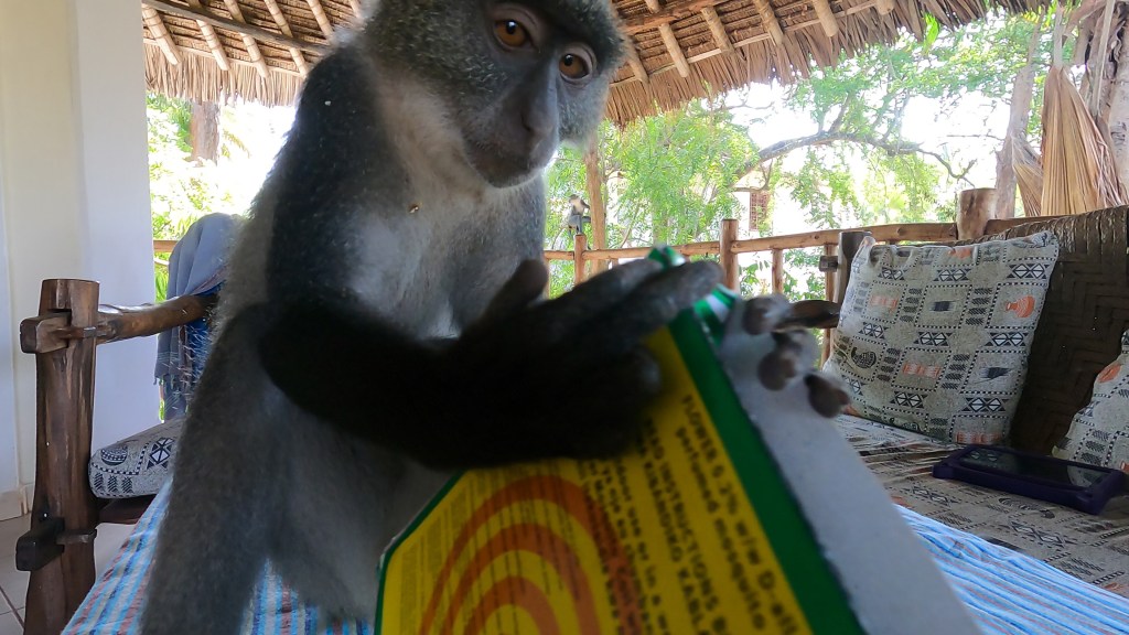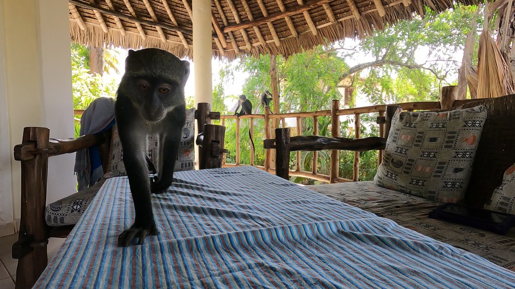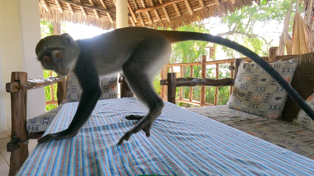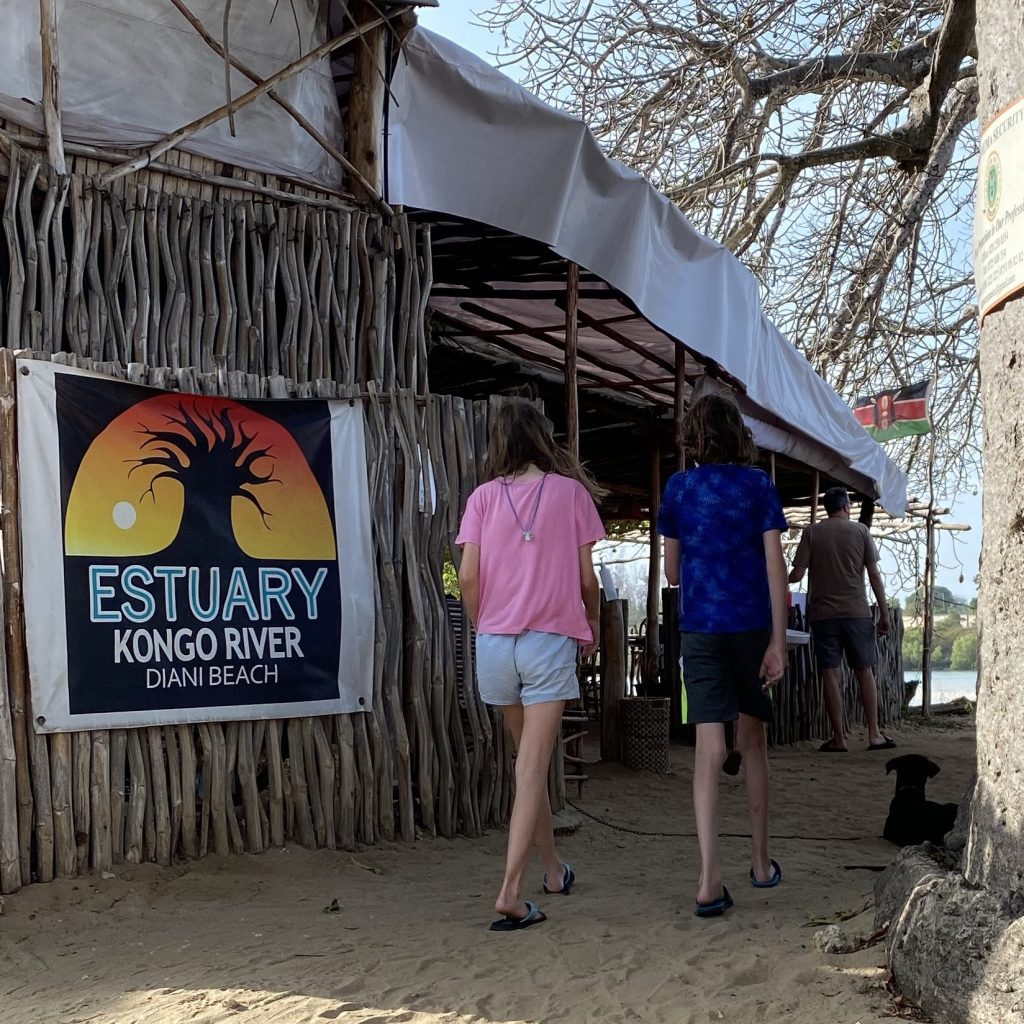 Once that fun had ended, we drove for dinner to the Estuary Beach Lounge. It’s at the northern most point of Diani Beach where the Kongo river flows into the Indian Ocean. We caught the late afternoon sunlight and found the area to be beautiful although the last 1/2 mile of the drive was unexpectedly rural such that we thought we were lost.