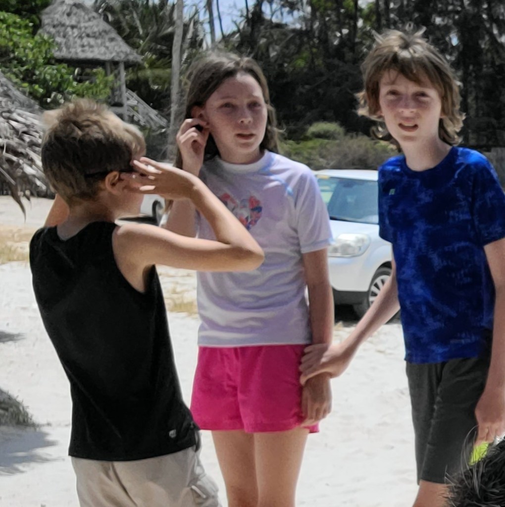 Today we did get to go down to the beach one last time to dip our toes and play in the sand a little. The kids weren’t much for photos today. They were pretty intent on the story they were weaving.