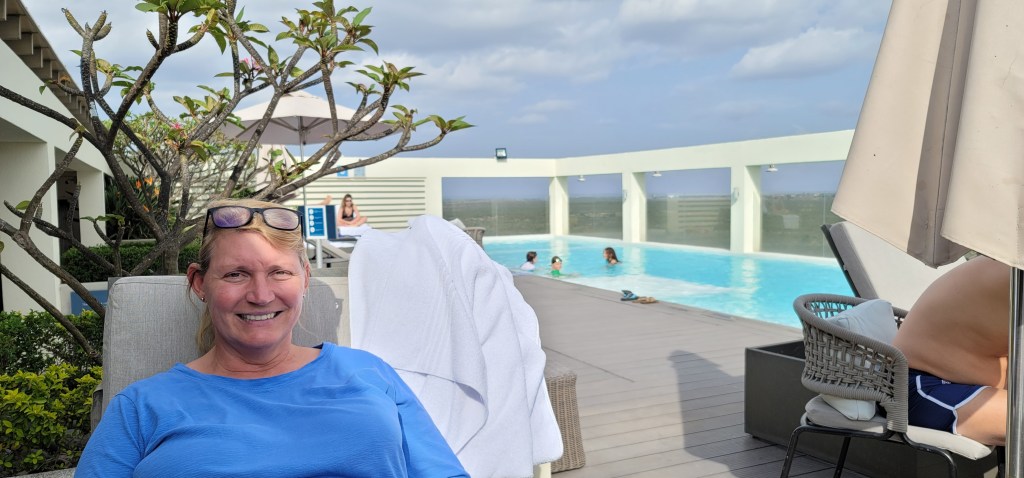 Similar to Monday’s hotel, this pool was also on the roof, but the view is of the National Park. The parents looked for wildlife while they had drinks on the pool deck including Tiffany’s DIY vodka tonic.