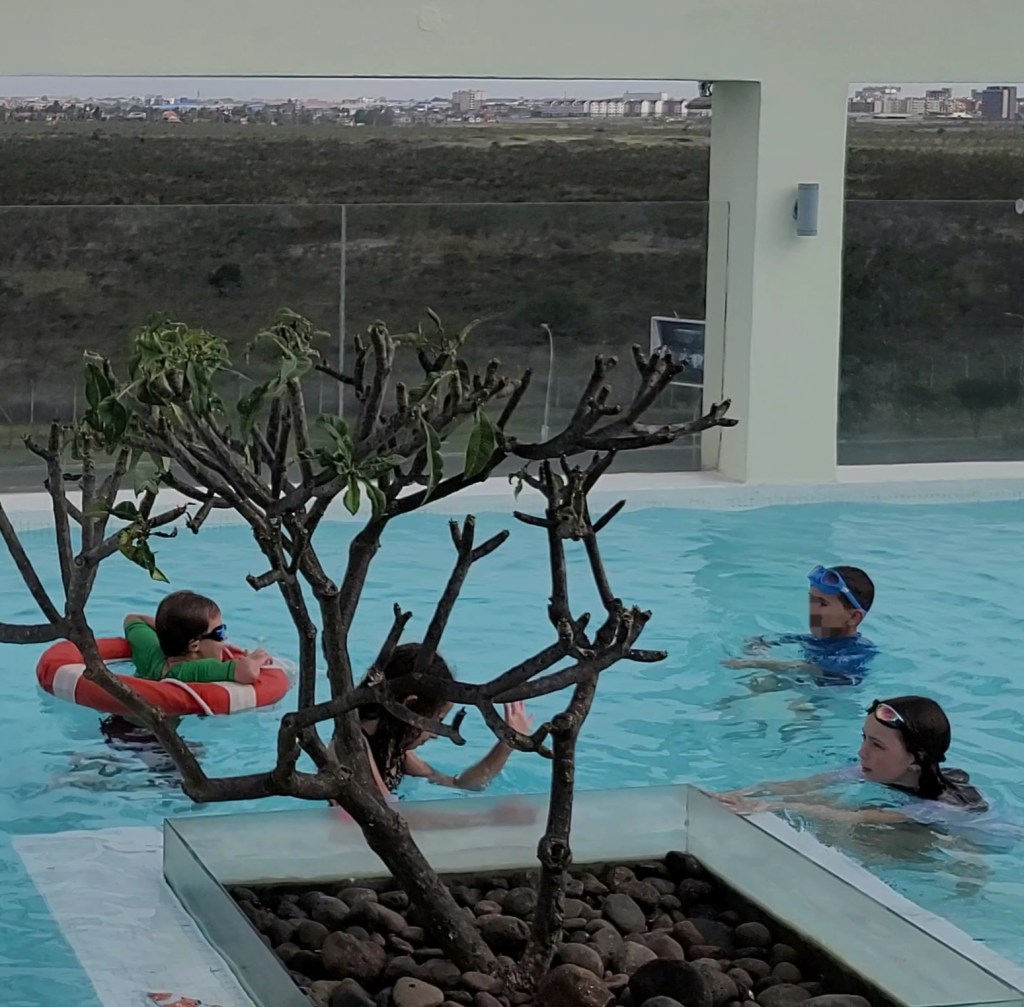 There were a couple of other kids in the pool their age from Bahrain. They recognized each other from the bush camp in Amboseli so they played together for a while. Our kids got a little Middle East geography lesson and swapped stories of which animals they saw on Safari.