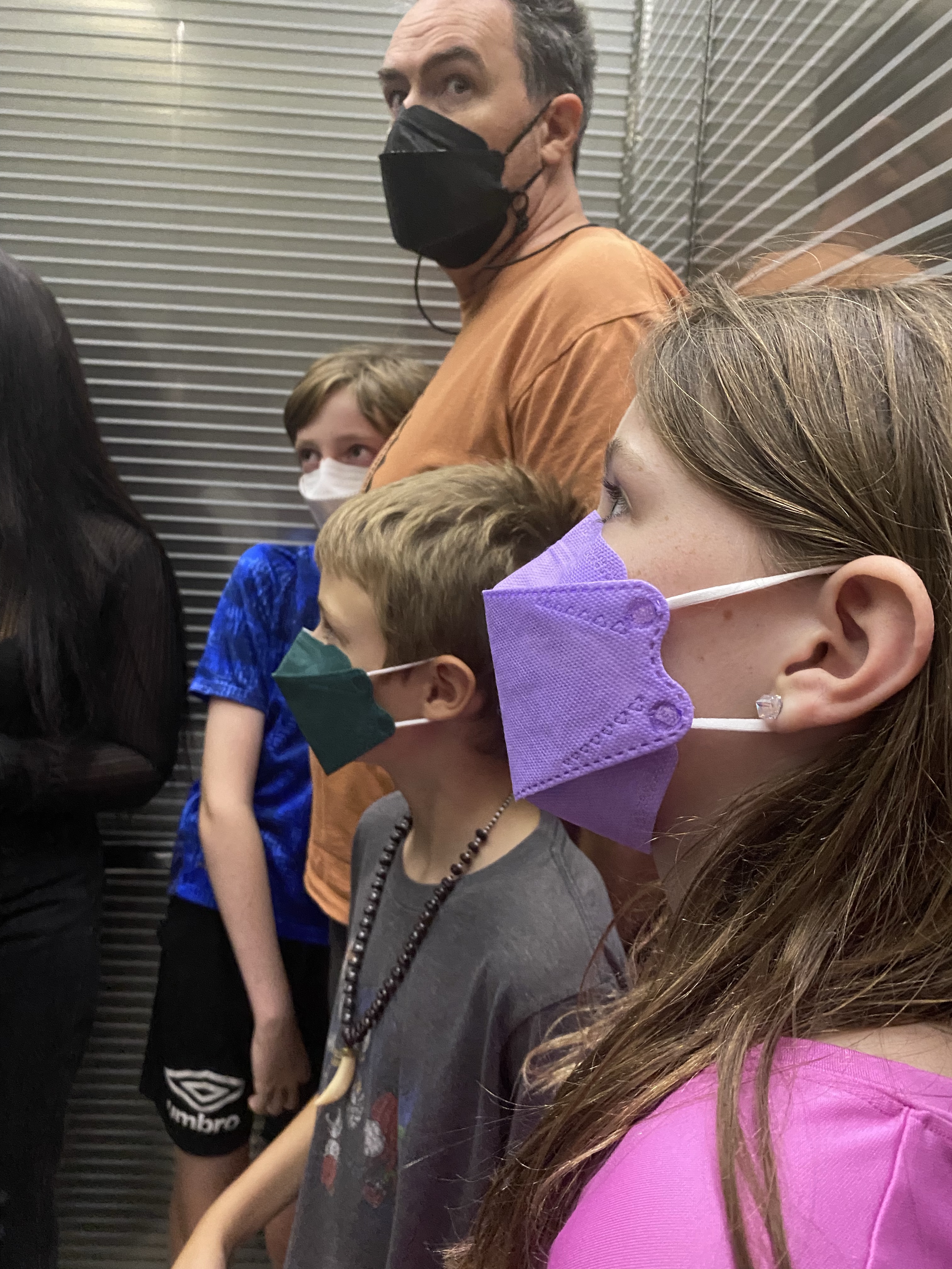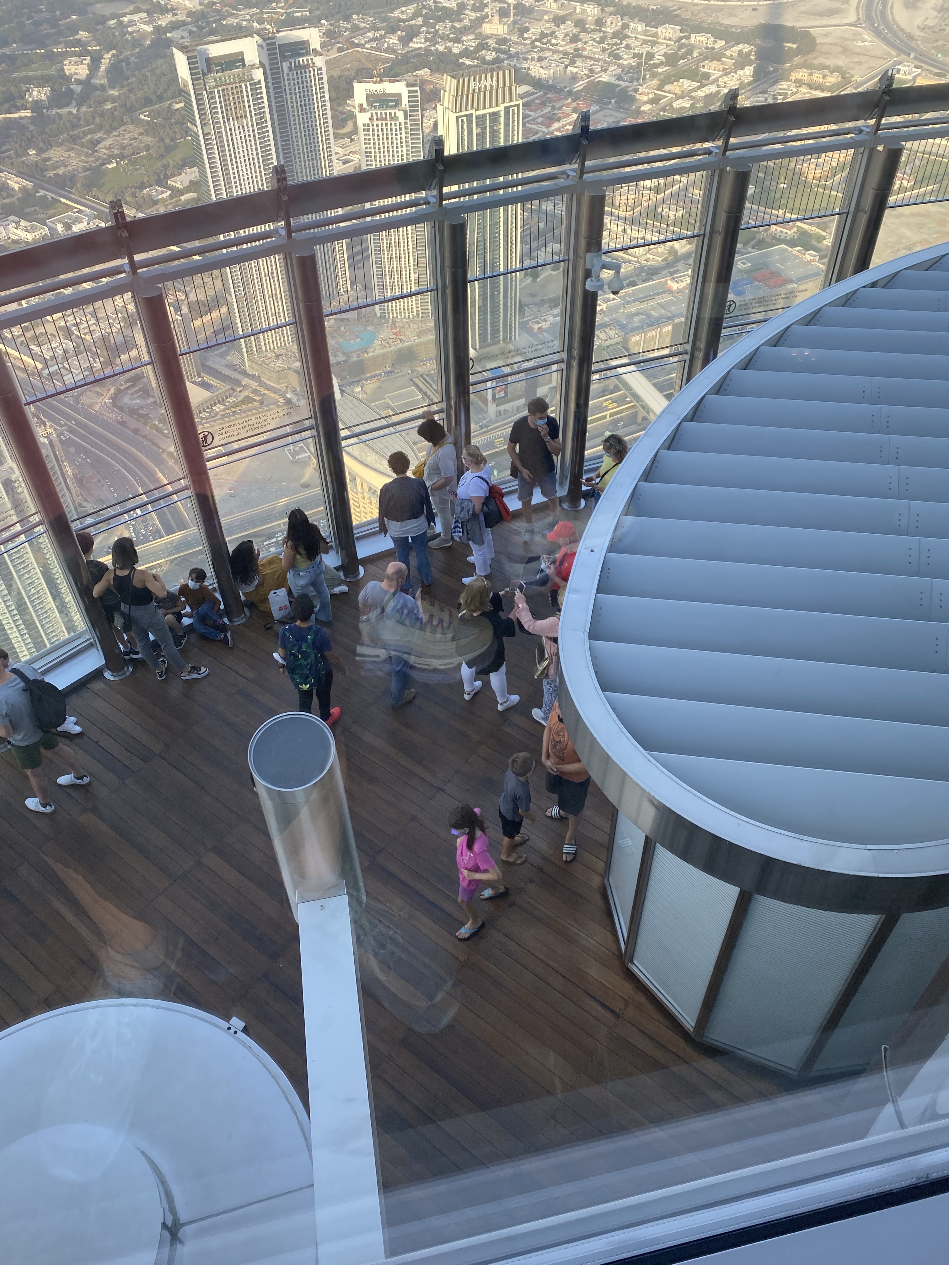 It was a bit hazy today so the panoramic Persian Gulf and desert views were missing. Still, seeing the city from that height was wonderful and dizzying. The kids said the cars looked like ants and you couldn’t even see people walking at street level – they were too small.