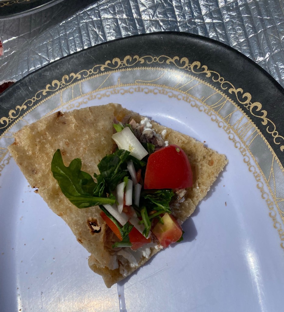 In the end we had a hot meal of chicken, potatoes cooked with tomatoes, rice and more Egyptian bread. It was simple and tasty despite being somewhat overdue.