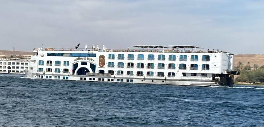 As the evening closed we did see a couple of the big river cruise boats headed the opposite direction – upstream to Aswan – but we didn’t get a good count. The drifting felucca was calling us to sleep.
