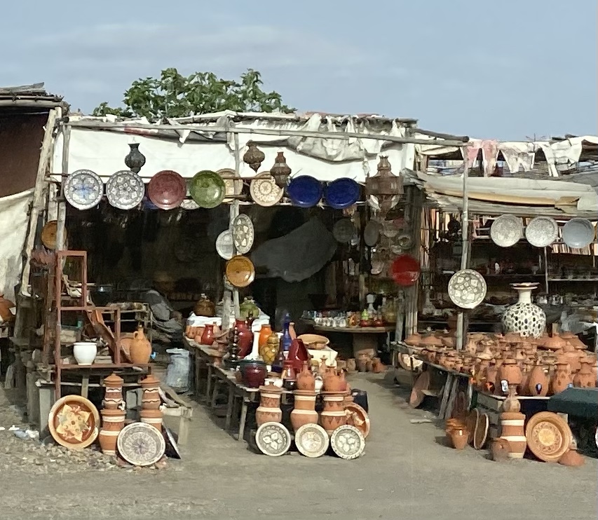 As we came into the outskirts of Marrakech we started to see roadside handcraft shops as a preview of what we’ll see in town.