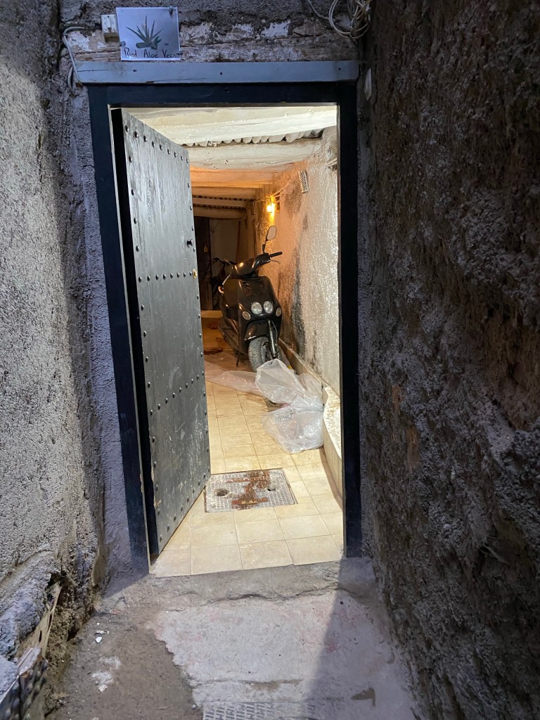 We’re staying in the old part of the City known as the Medina. Our van passed through the outer walls and took us another 5 minutes through increasingly narrow streets. Then he stopped and called for our host to meet us. Once she arrived our luggage was transferred to a hand cart pushed by a local. We followed our belongings through the busy streets crowded with locals on foot, motorcycle, scooter and bicycle. We didn’t take photos while we walked, it was to much amazing hustle and bustle but we went back later to grab a pic.