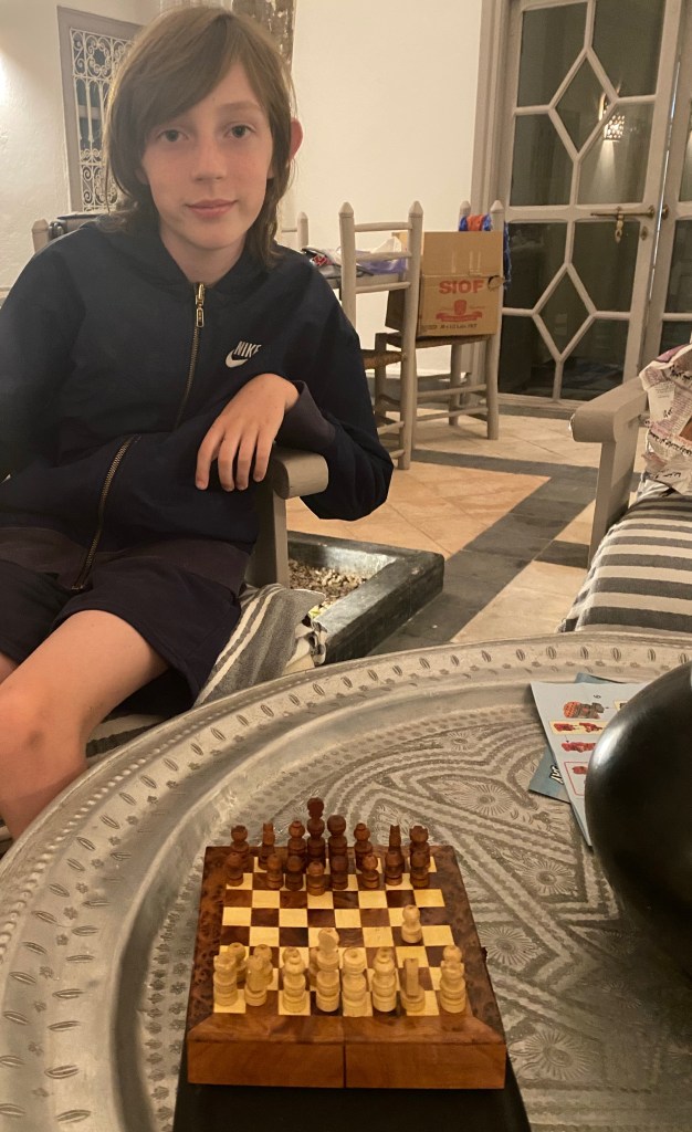 Once we got back to the Riad, CreeperKitty broke out the chess set and Mom agreed to a game. Two minutes later the game was over. It only took the boy three moves to checkmate her – a great way to break in the new souvenir.