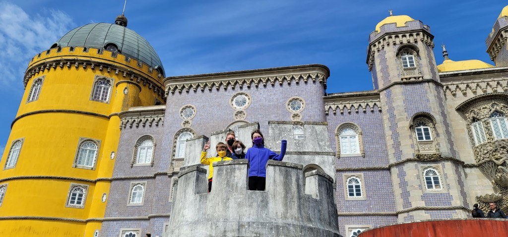 We visited the Pena Palacio first. Research told us the palace was built on a hill a couple of hundred meters higher than the train station. The 5 Adventurers chose to catch a ride up the mountain and then walk back down. We usually try to walk places – we have logged over 5 km per day (3.5 miles) for the last three weeks. Today was a 6+ mile walking day without the miserable 45 minute uphill climb.