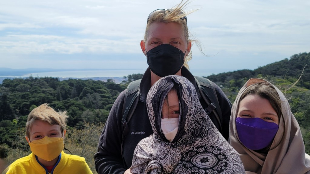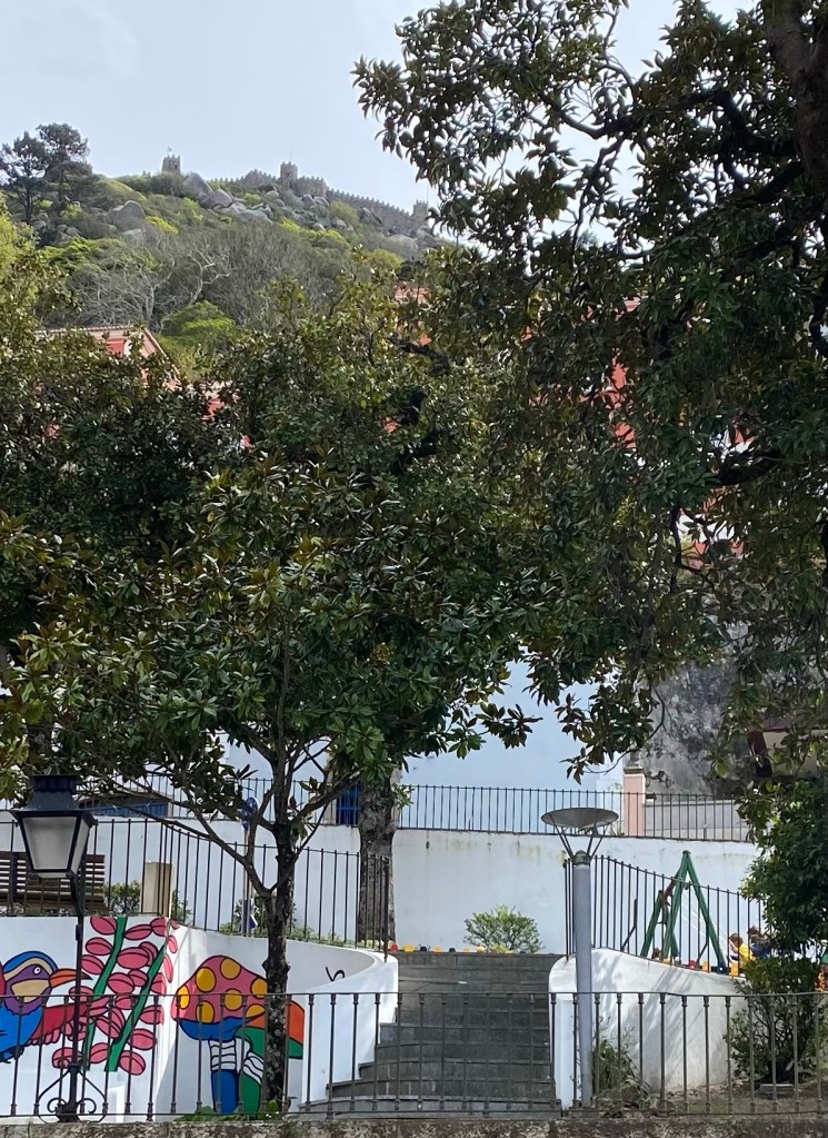 On our way down, the kids of course couldn’t resist a swing set – they are in the lower right of the photo with the Moorish Castle we just left way up on the hill.