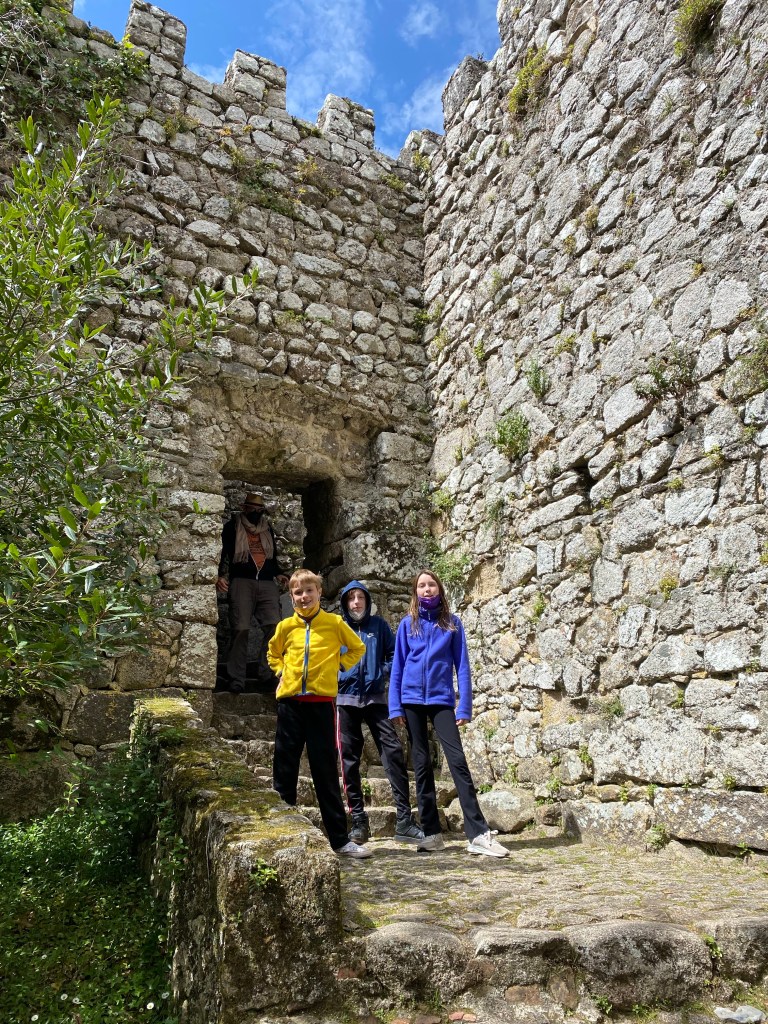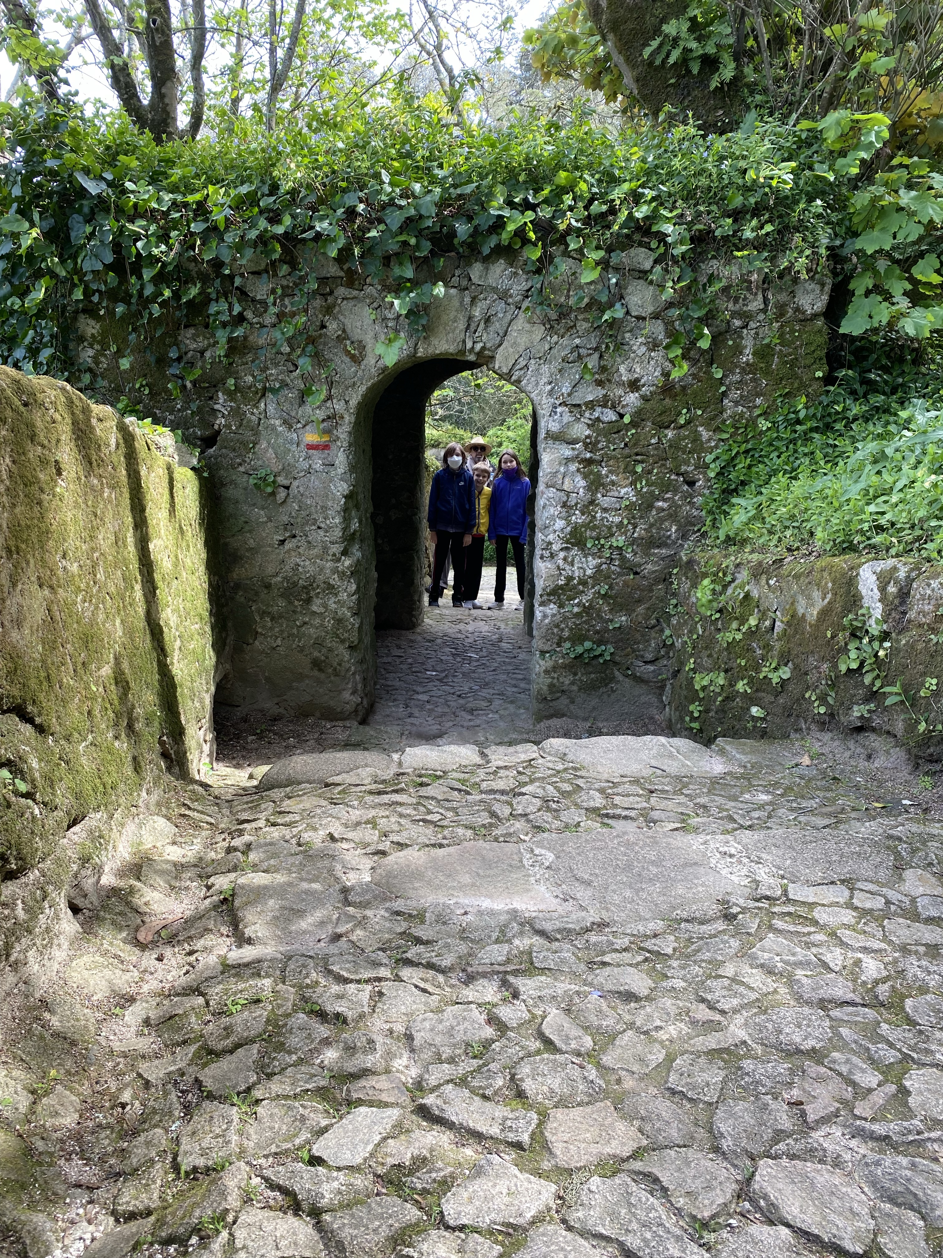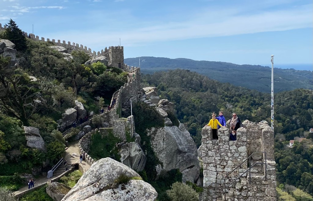 After visiting the colorful Pena Palace we walked down to the other castle on an adjoining hilltop which was covered in stone walls. This was the Castelo dos Mouros (Castle of the Moors) which was built in the 8th and 9th centuries and was occupied during the Muslim Iberian period when Islam ruled this area. The castle was eventually overun by Christians in the 12th century who established churches in the area and the monastery which would become the Pena Palace.