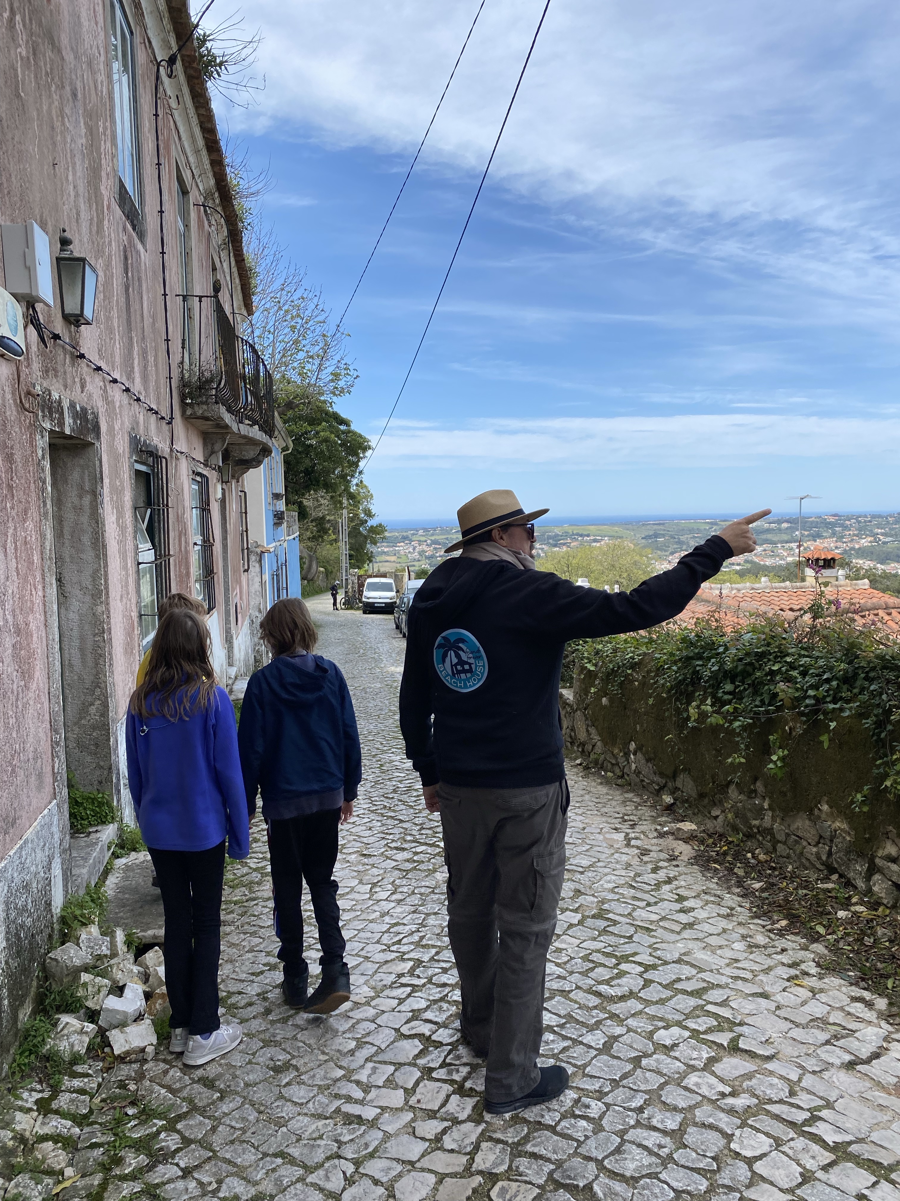 These imposing stone walls were difficult to climb and we had steep drop-offs on both sides of us as we walked the perimeter. There were truly spectacular views of Lisbon and the Bay at the mouth of the Rio Tajo to the East and the Portugese Atlantic Coast to the North.