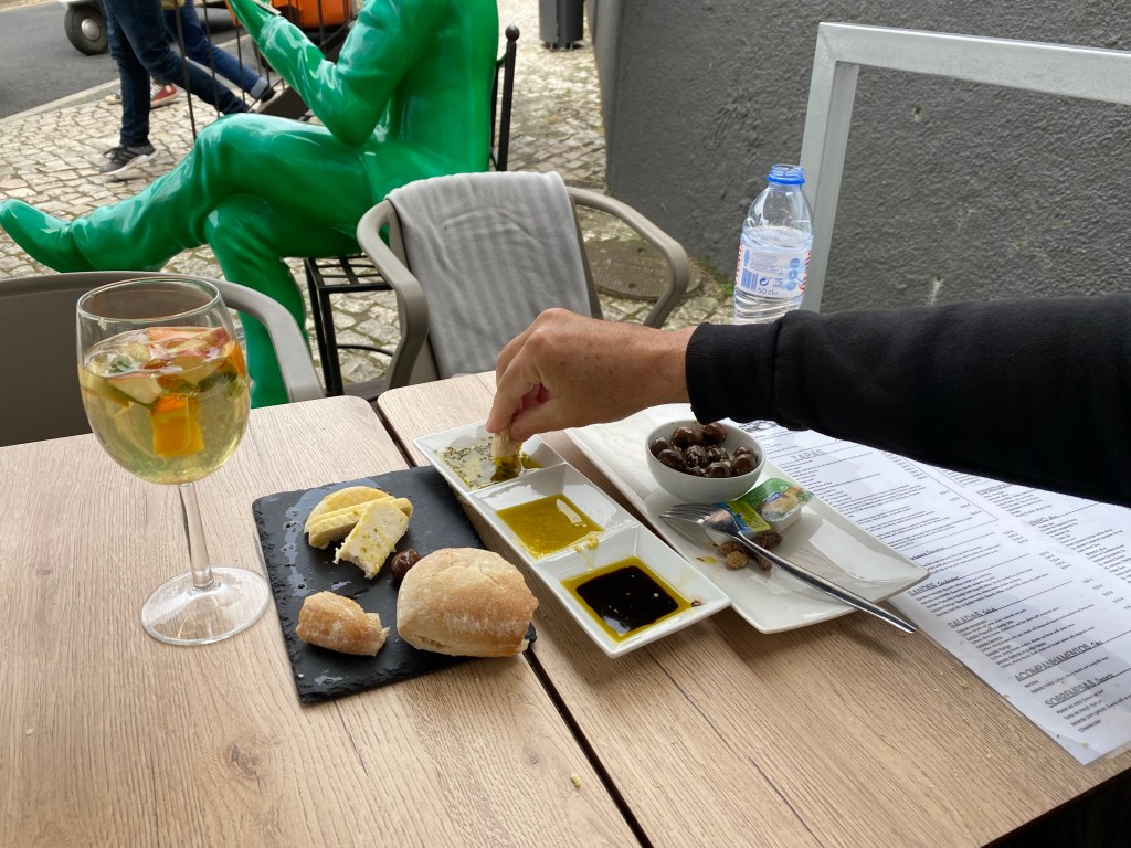 We decided to take the walk down the hill back to the train station and were very glad that we did. We were treated to some lovely views of the historic resort town of Sintra and found ourselves stopping partway down to try a 3 olive oil tapas and some sangria.
