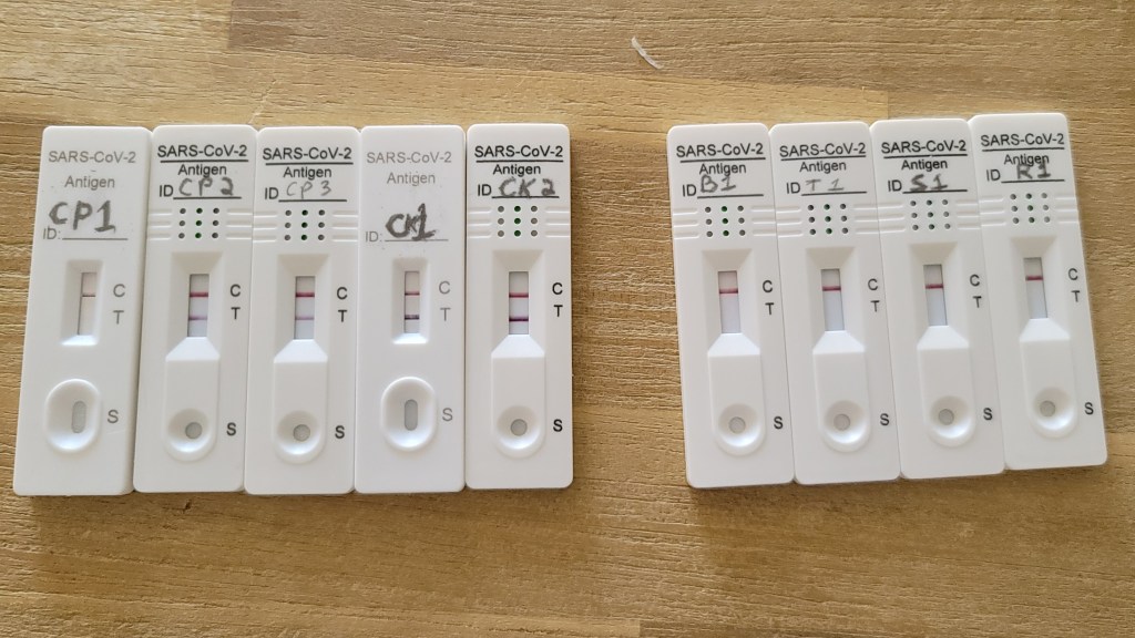 When CreeperPuppy and CreeperKitty came down with a fever it seemed the prudent thing to do was take a test and see what we were dealing with. Turns out it was 2 Adventurers positive in multiple tests and 4 Adventurers negative.