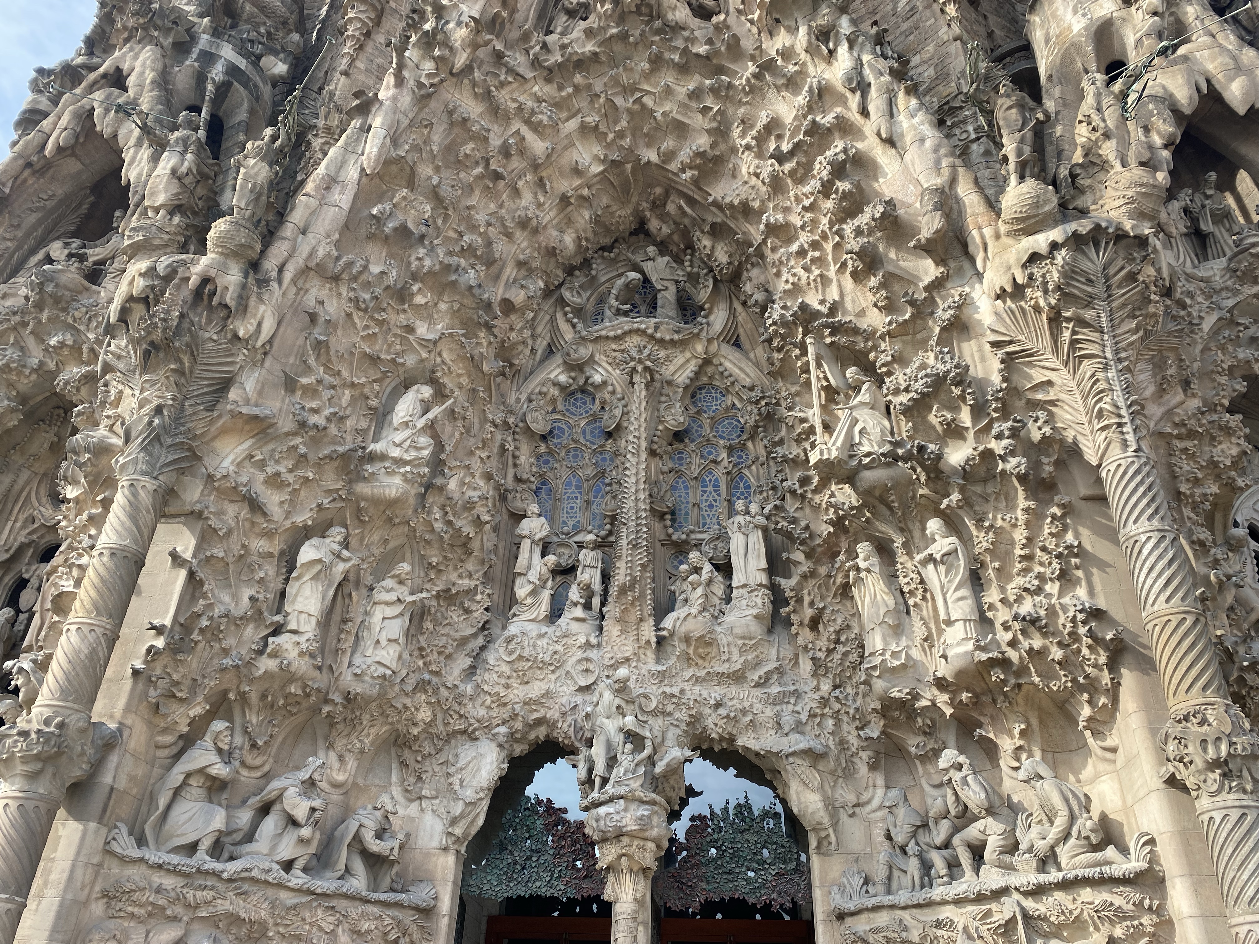 The outside of the church shows scenes from the life of Jesus Christ. The Nativity façade is quite ornate while the Passion façade is purposely more austere. But height and excessive decoration are the key elements all around.