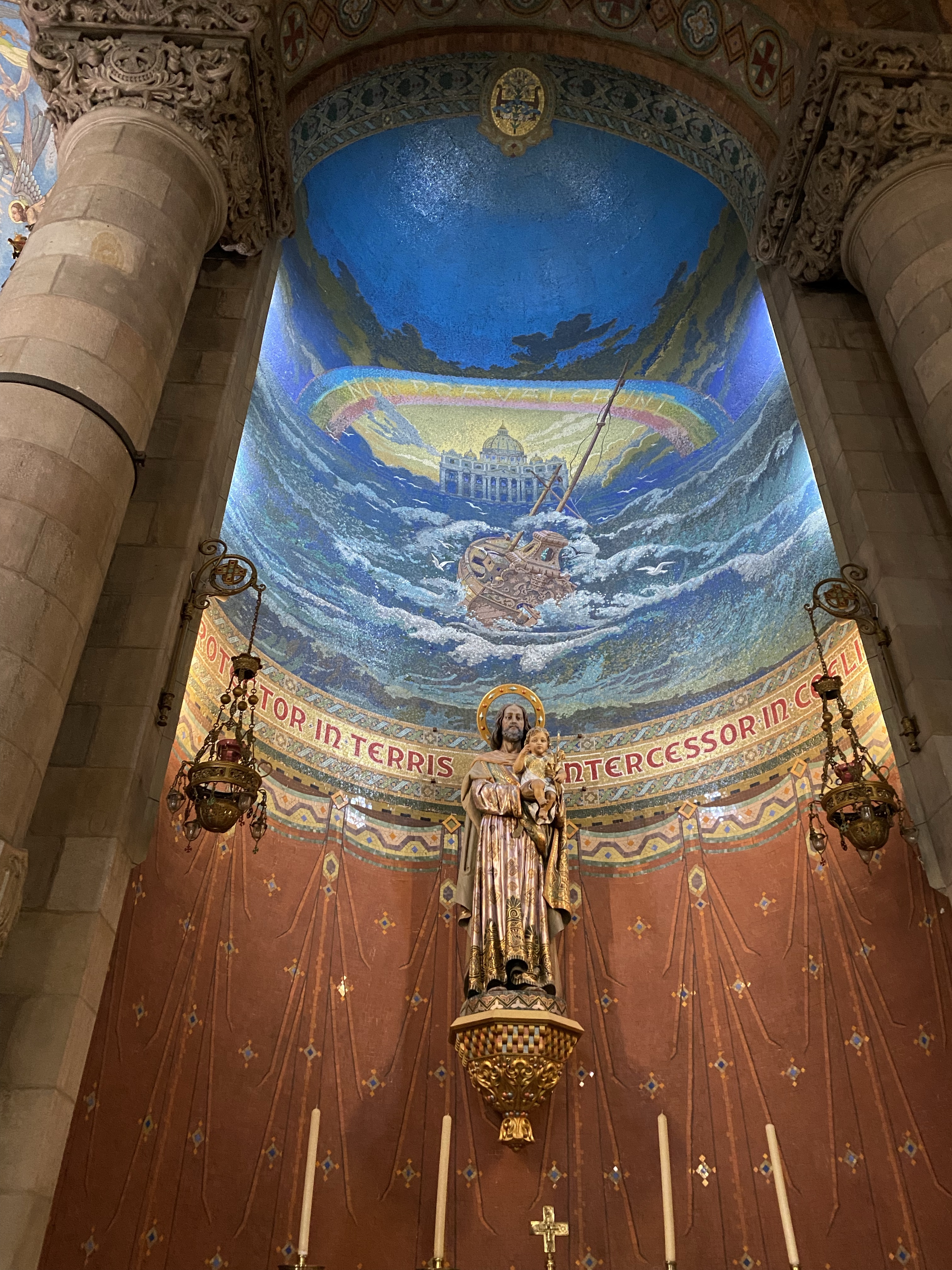 Next up was a journey to the top of Tibidado, a 1,680 foot high hill overlooking Barcelona. It features the beautiful Sacra Cor church built between 1902 and 1961.