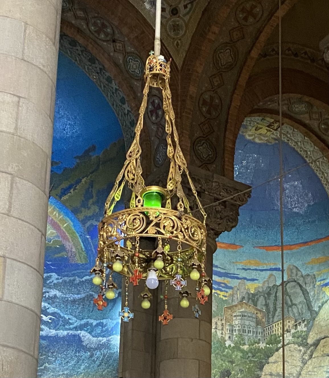 The inside was designed to look like a forest with natural light coming through hidden skylights and numerous stained glass windows.