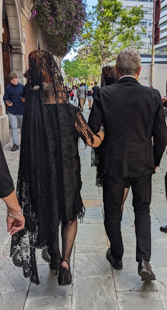 Thursday was Holy Thursday which saw a large number of women dressing in La Mantilla – the traditional dress of black with a high veil.