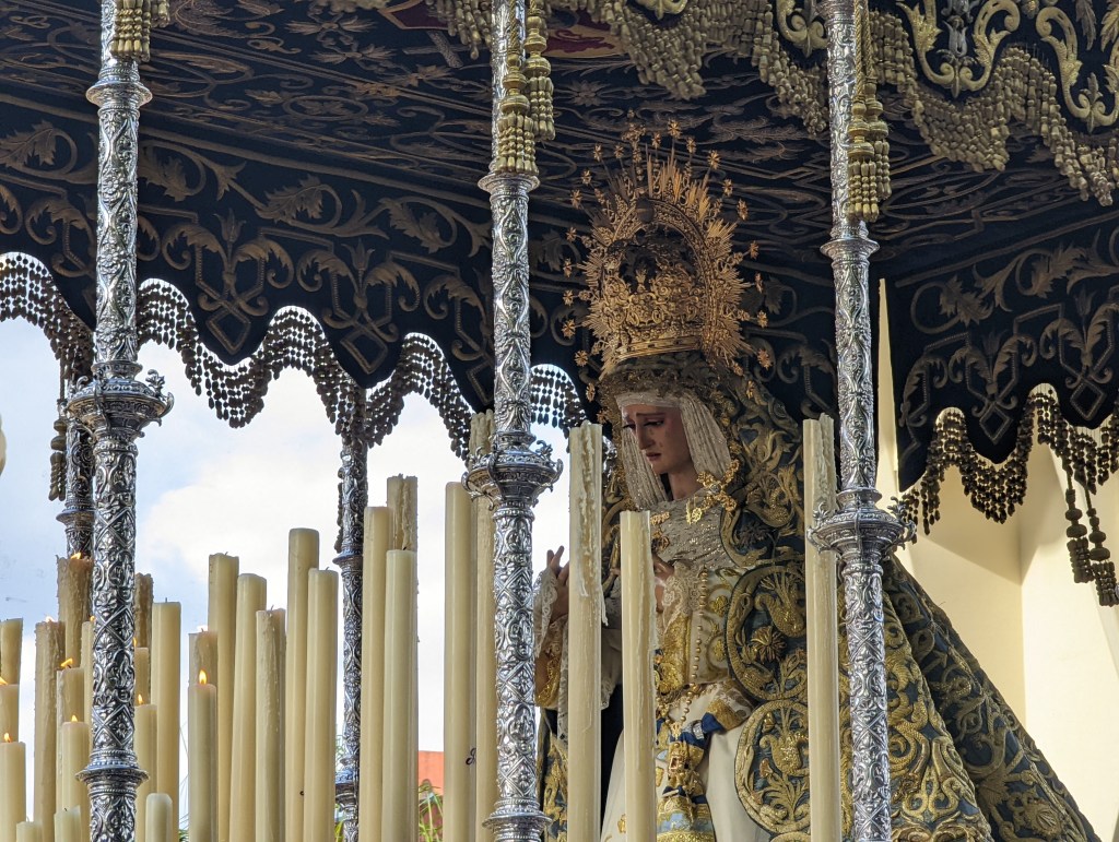 5th – The central focus of the procession – the paso. There are up to three pasos in each procession. The pasos are an image or set of images set atop a moveable float of wood. They are richly carved structures decorated with flowers, fabric and candles. Some depict scenes of Jesus and are dedicated to him, some depict Mary. Many in Seville are considered historically significant, having been carried by the brotherhood since the 16th century.