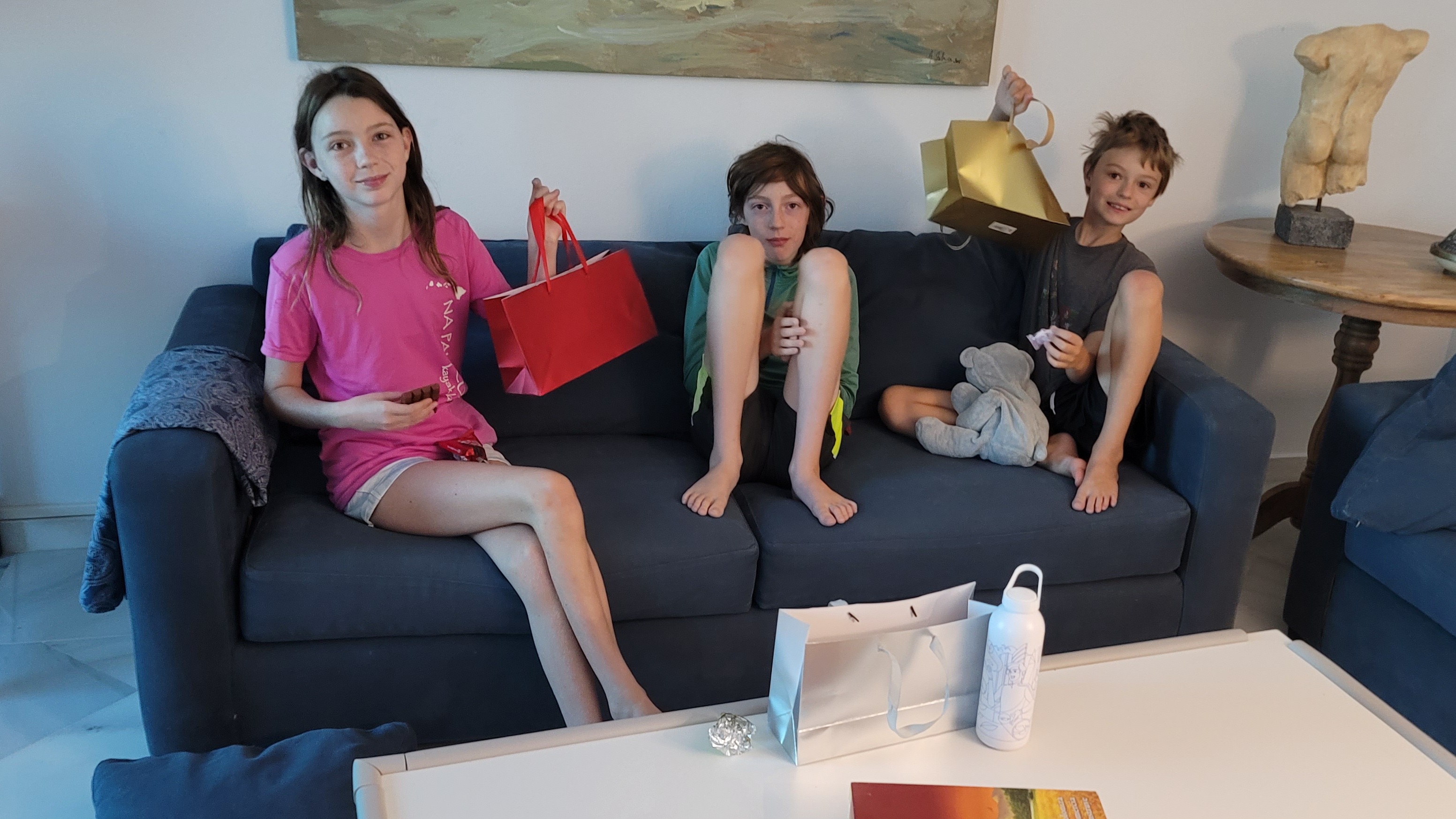 The children awoke earlier than usual looking for signs of the Easter Bunny. They had been disappointed that a leprechaun failed to find them in Egypt and were anxious as to whether the Bunny would find them in Europe. (Both the leprechaun and the Easter Bunny leave chocolate, typically).