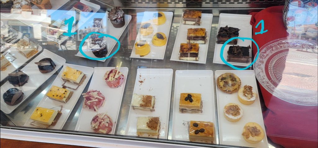 Suaram chose the piece of chocolate cake on the right and CreeperPuppy chose the cupcake on the left. Everyone appreciated getting to go for a walk and earning these calories.