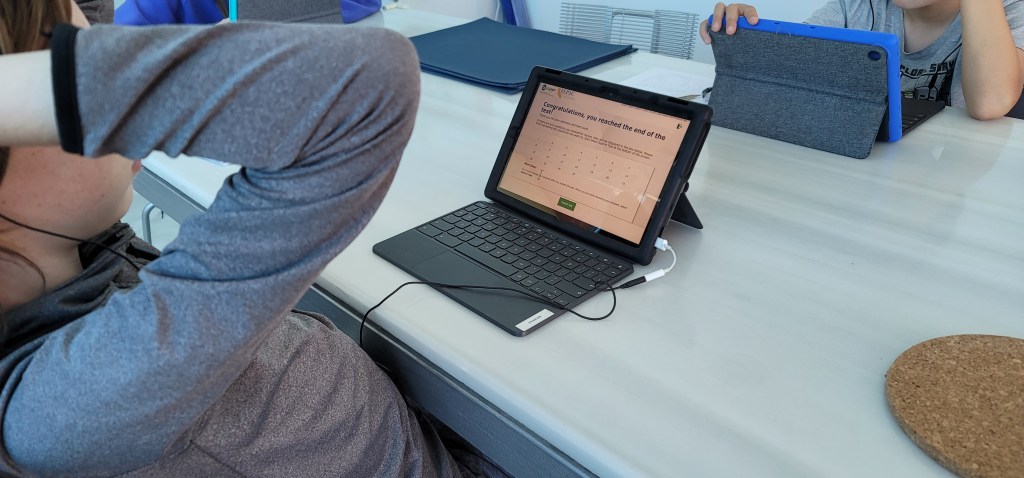 Turns out we couldn’t get the results without an actual login which we don’t have. But based on teacher observation and the way that the kids talked about the questions they all did okay so that’s good.