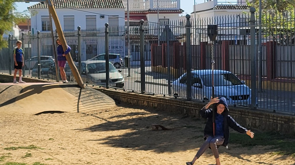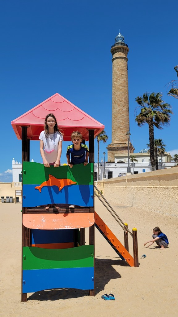 Before we got there the kids called out from the backseat of the rental car to stop at a playground at the entrance to Chipiona’s city center.