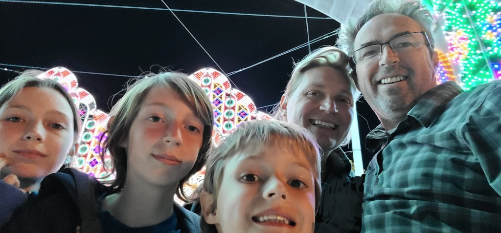 We stayed just a little while after the lights went on then took our 10 minute walk back to our apartment. We were all happy but pretty worn out after today’s Adventures exploring a new town and a familiar fair.